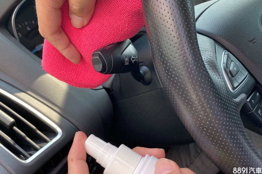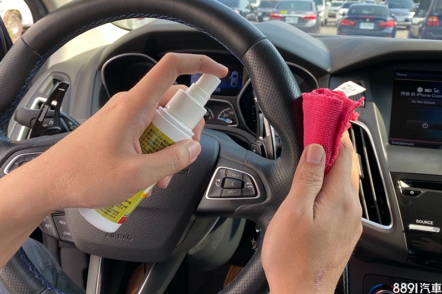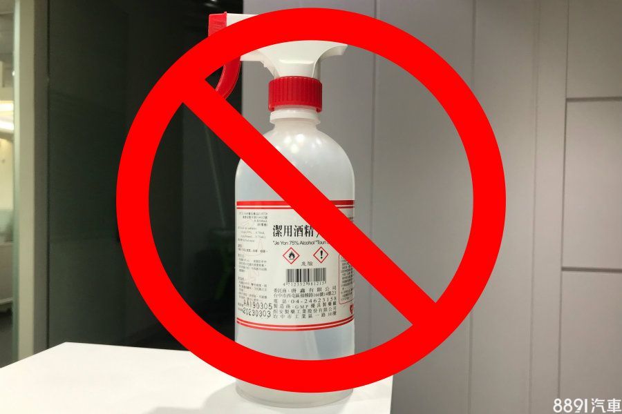 汽車內裝材質以塑料為主,但也有部分烤漆或各式塗層,並不建議用漂白水、雙氧水、酒精等溶劑直接噴灑擦拭,由於這些產品或多或少帶有腐蝕性,有可能破壞汽車內裝或留下痕跡。常見消毒用品中「次氯酸水」算是有消毒能力、腐蝕性較低的產品,較適合用於汽車內裝,但還是建議使用前在不明顯處試試看,確定不會留下擦拭痕跡後再使用。