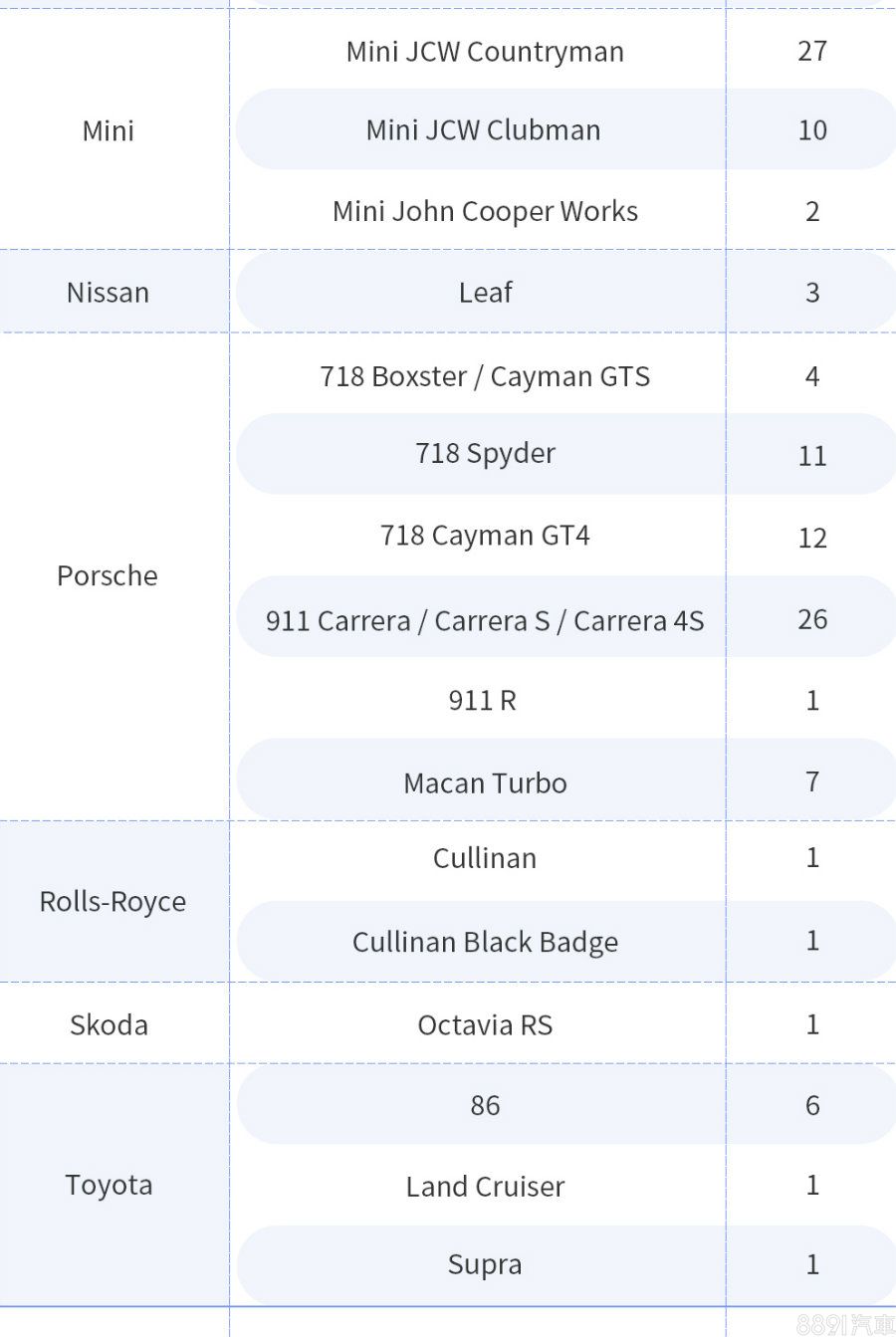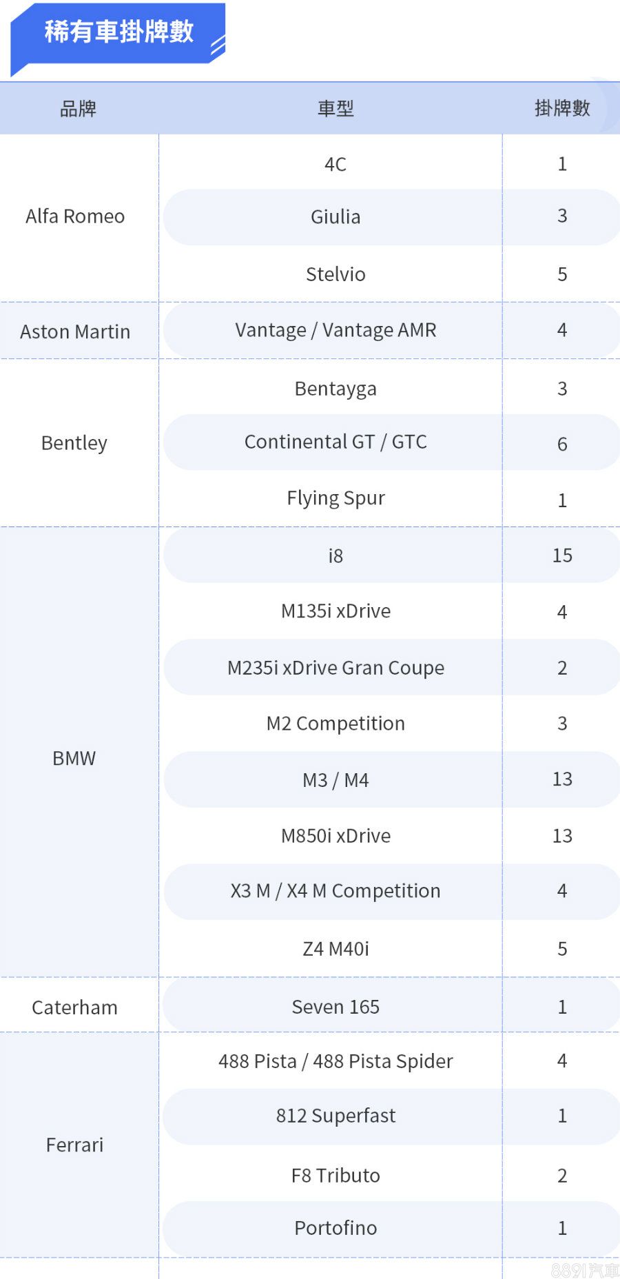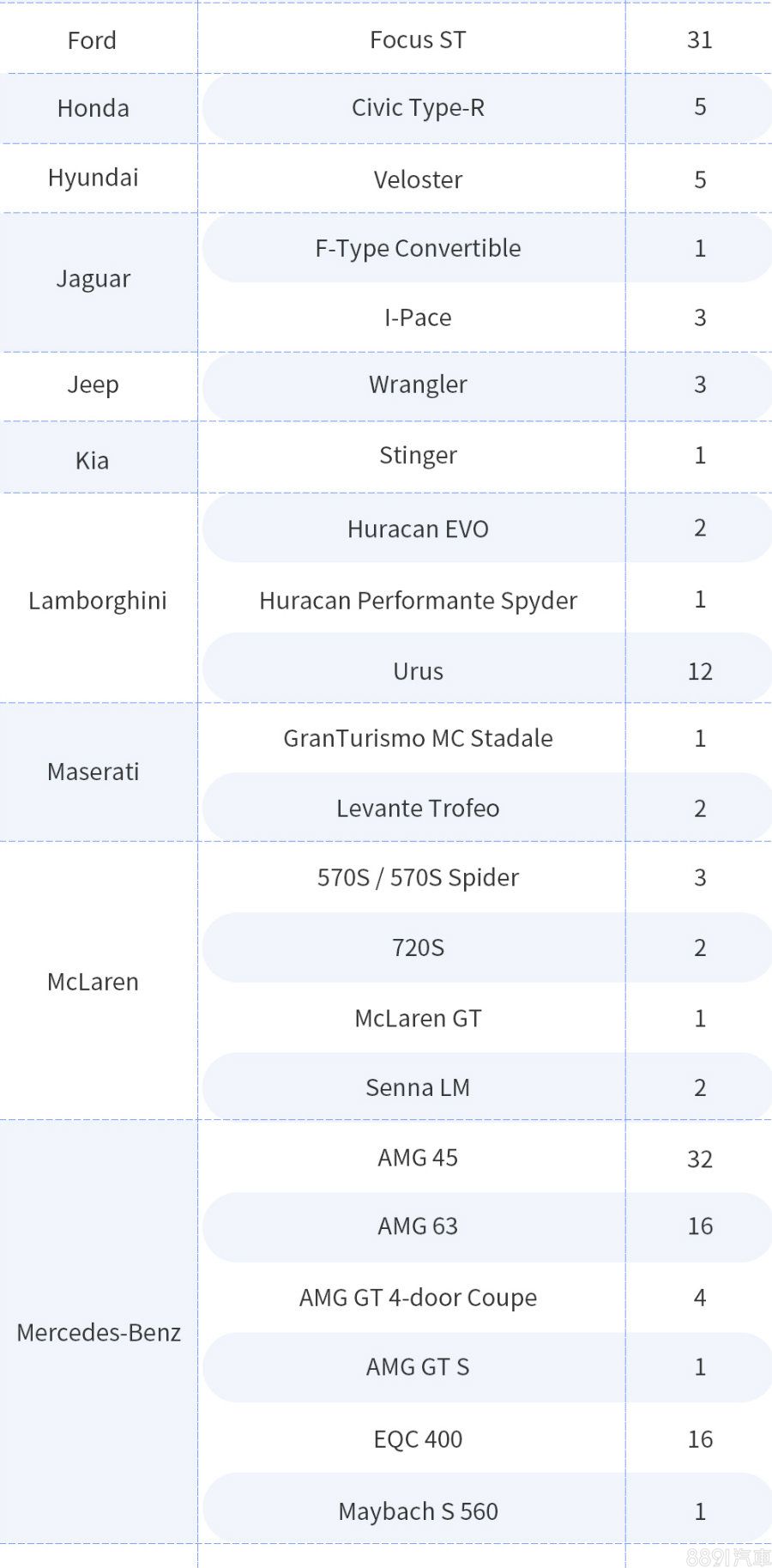 從掛牌數來看,稀有車似乎不受疫情影響,高端超跑品牌如Ferrari、Lamborghini及McLaren等的交車數量及車款變化不大,特別是全球限量的Senna LM本月又再掛牌2輛,成為榜單中的最大亮點。