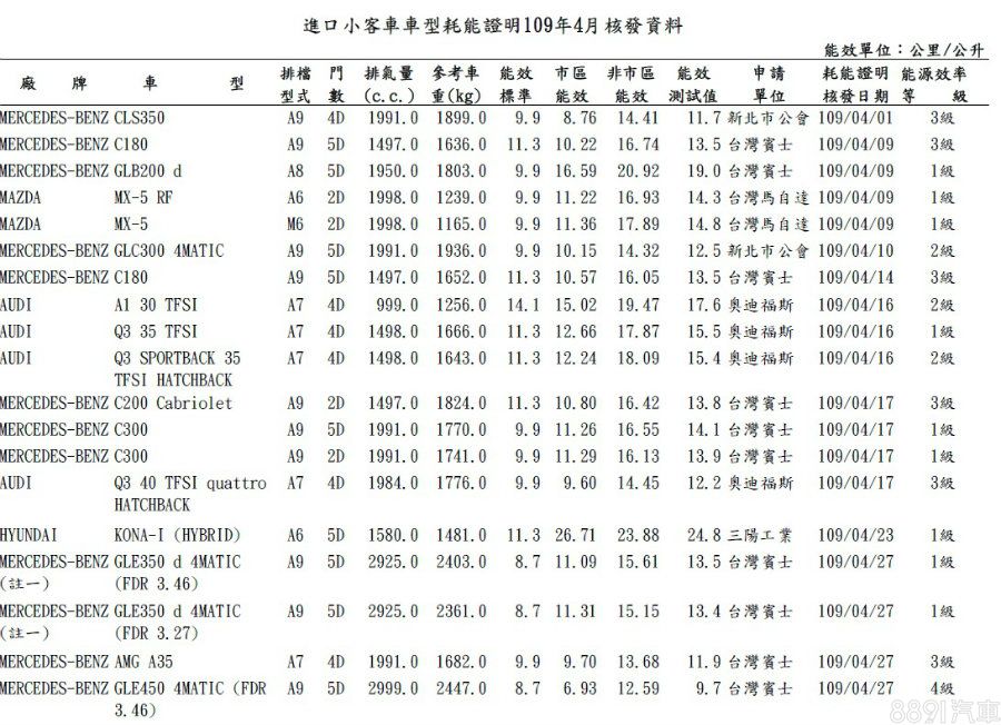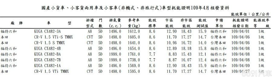 至於也很受關注的大改款Kuga,現身於油耗資料上的動力有1.5升三缸渦輪引擎,最大輸出182hp/24.5kgm,平均油耗為15.8~15.9km/L;另出力245hp/40kgm的 2.0升四缸渦輪引擎也入列,繳出12.1~12.4km/L的平均油耗成績,以上動力均搭配8速手自排變速箱。