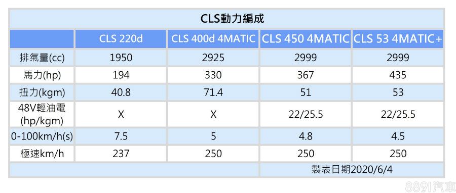 至於動力部分照舊仍有2汽2柴的配置,全數均搭配9速手自排變速箱,車型劃分為200d、400d 4MATIC、450 4MATIC以及53 4MATIC+。(詳細規格參閱上表)