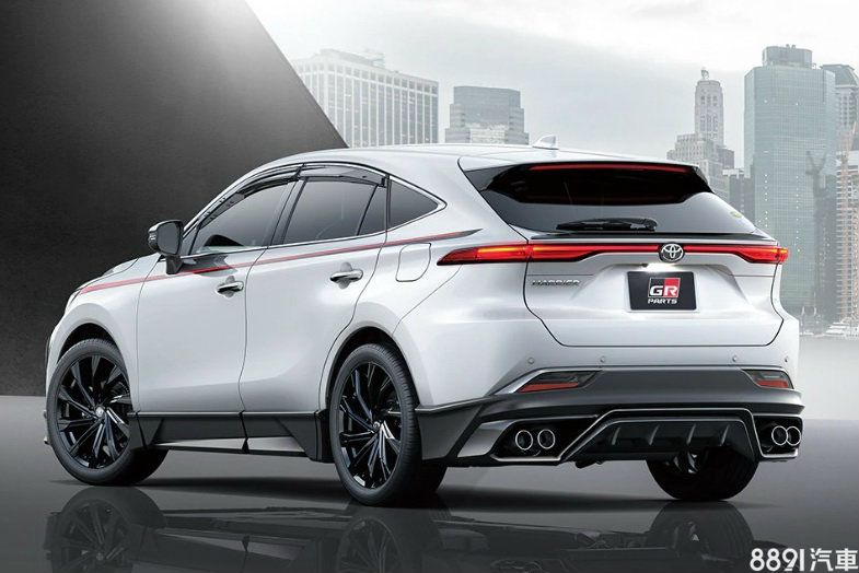 前保桿兩側飾件與犀利的前下擾流,均被施以亮黑塗裝,讓原先外觀特色趨於「斯文」的新Harrier,多了不少運動氣息,而位於前後輪拱處的GR車貼,則明示其身分。