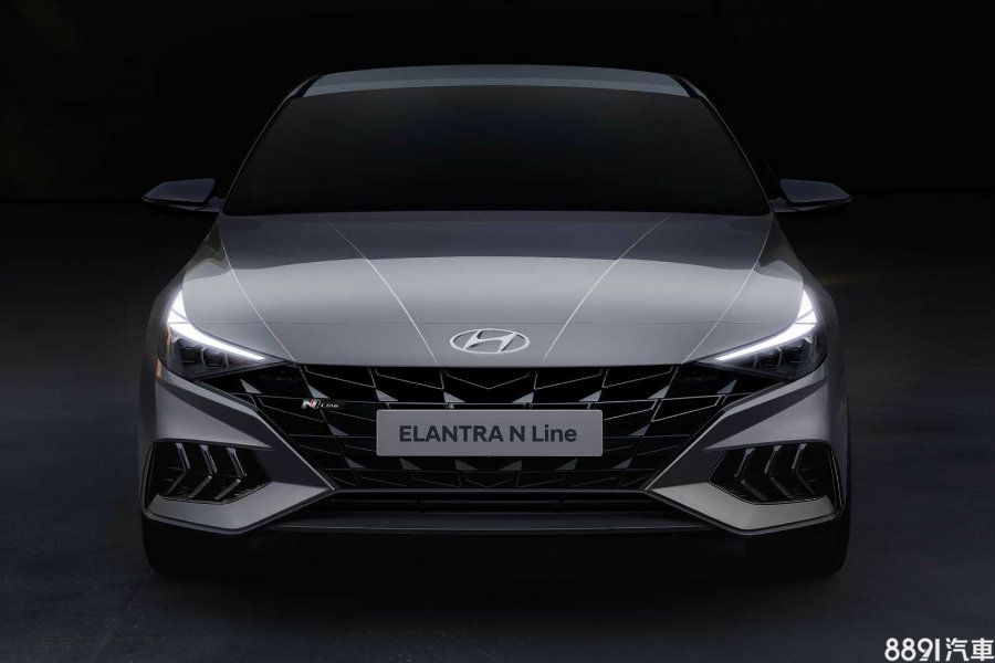 作為Hyundai「N」產品線中的一員,N Line即運動化車型,連結頭燈組的網狀水箱護罩已於新世代Elantra可見,上方的N Line徽飾足證其身分,前保桿兩側進氣口設計則更具侵略性。