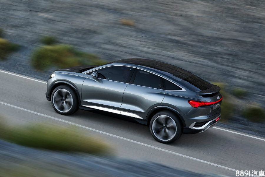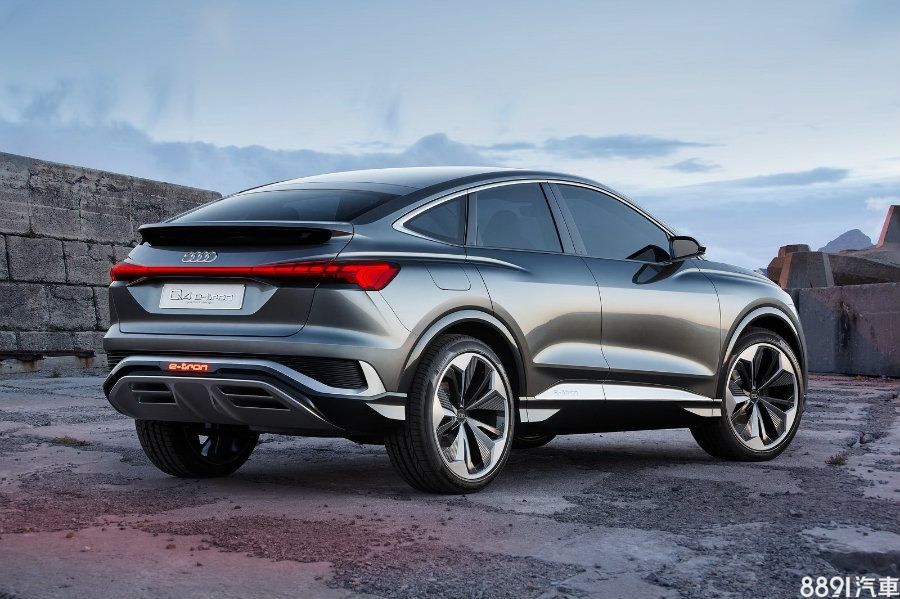 自B柱以後向下傾斜的「美背」為其最大特徵,延伸出的小型鴨尾讓車尾更顯挺翹,其他如橫貫式LED尾燈、後保桿造型都和Q4 e-tron Concept幾乎如出一轍,不過Q4 Sportback e-tron Concept更多了消光金屬飾條點綴,另搭配的飾22吋鋁圈,尺碼有效強化氣勢呈現。