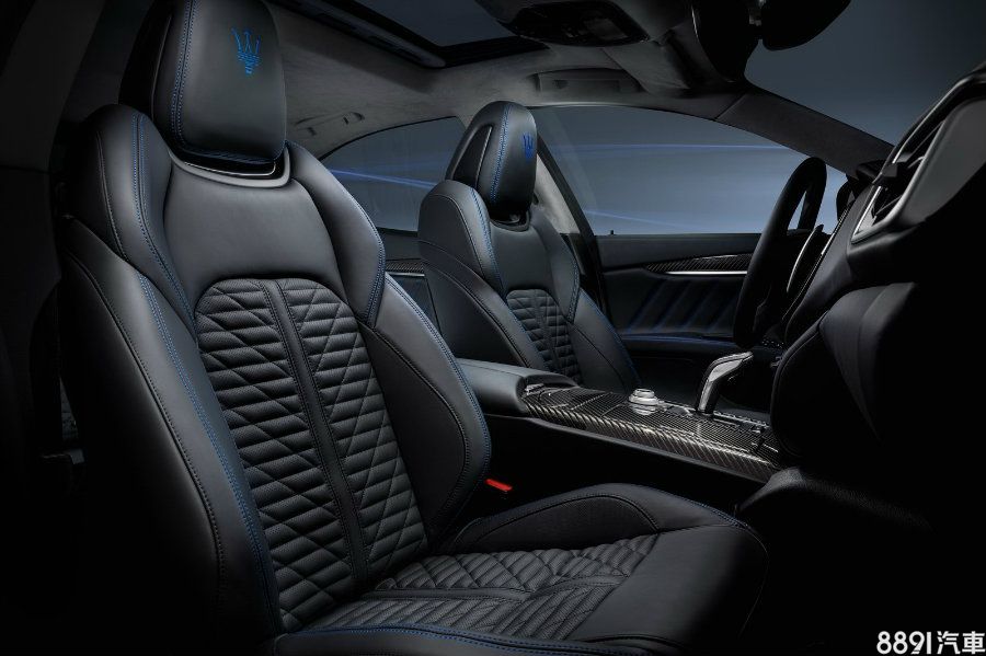 為呼應新能源車型身分,Ghibli Hybrid於車身多處如前葉子版鰭孔、煞車卡鉗及廠徽等,均施以藍色色調妝點。