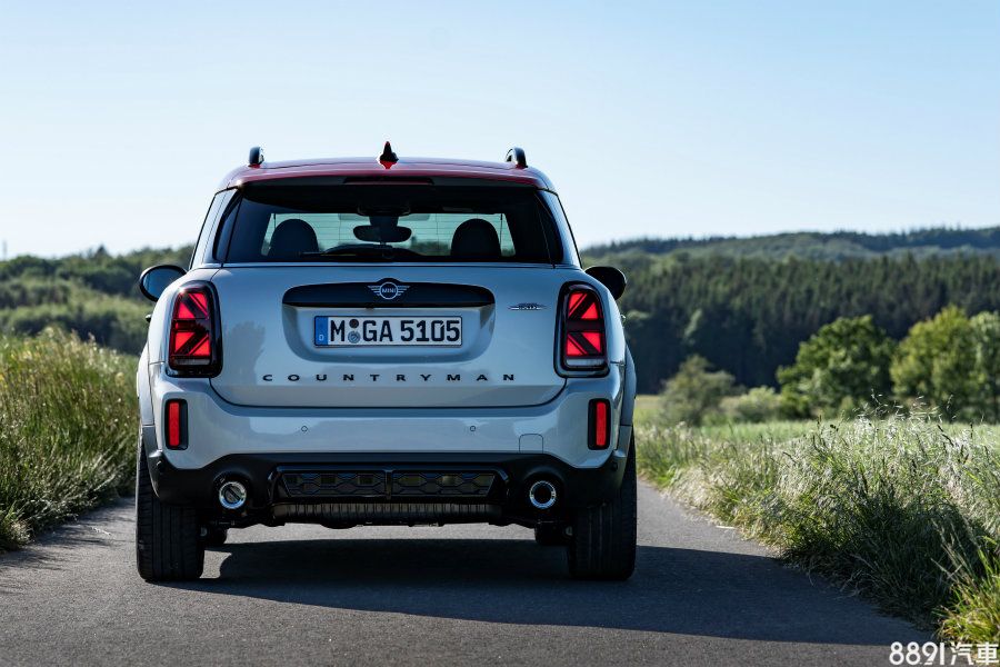 小改款JCW Countryman車頭變動最大的地方在於水箱護罩,先前猶如「紅唇」造型的紅色飾條,現改成較單純的橫條式樣;下方加大進氣壩則與小改款前幾乎一致。頭燈採LED光源,另可選配Adaptive LED矩陣式頭燈。車色部分則新增White Silver銀、Sage Green綠、以及Piano Black黑三色金屬漆。