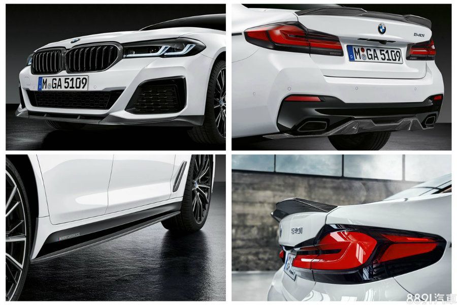 BMW針對一般5系列/M5/M5 Competition,推出一系列M Performance Parts套件,外觀部分包含水箱護罩柵格、空力套件、排氣尾飾管、後視鏡蓋、車門檻飾板、油箱蓋等處,都提供黑色鋼琴烤漆或碳纖維製部品的升級選擇。