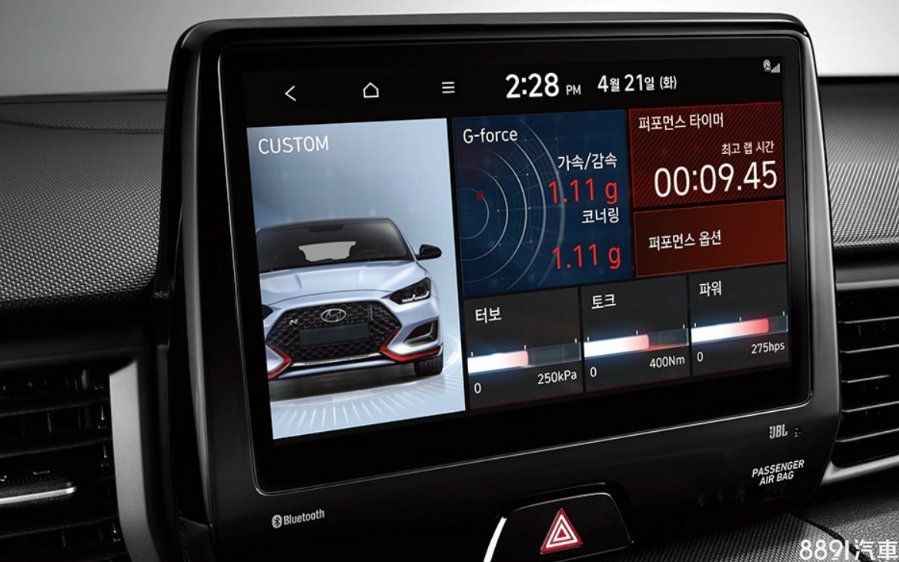 美規新年式Veloster N外觀並沒有明顯更動,主要是將性能套件列為標配,車內則是升級搭載N款輕量化跑車座椅,重量可減輕約2kg,多媒體系統也改搭8吋觸控螢幕。