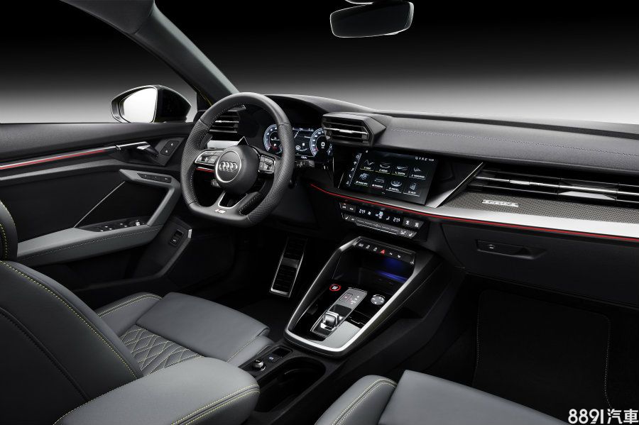 內裝部分S3透過鋁質、類碳纖維飾板的點綴來提點性能氛圍,10.25吋數位儀錶與中央10.1吋螢幕是標配,身搭第三代MMI多媒體娛樂系統,透過觸控、旋鈕、語音皆可操控,另提供12.3吋的升級選擇。