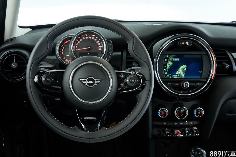 車室搭載Mini Yours內裝飾板Piano Black Illuminated、跑車式真皮方向盤、整合導航、無線Apple CarPlay功能的6.5吋多媒體系統。