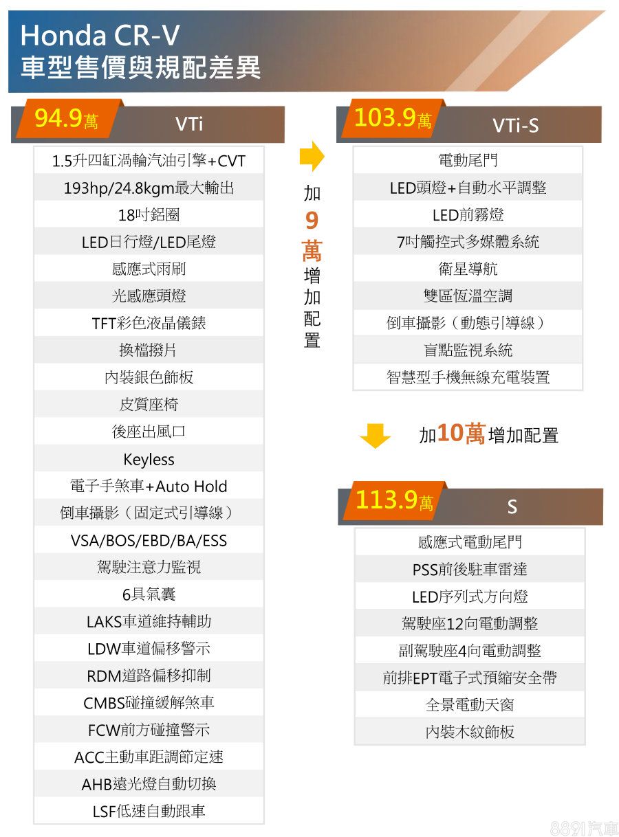 繼上個月底的試駕活動後,小改款CR-V於9/3正式在台販售!新車大致維持既有基礎,主要亮點包含車系新增百萬內入門車型,Honda Sensing列全車系標配,外觀導入深色調風格並小幅修飾,內裝則補足實用與便利性配備。