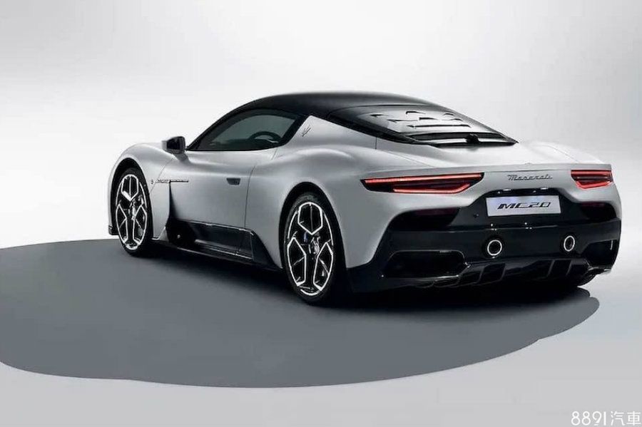 MC20的頭尾燈均以造型簡單的導光條刻劃輪廓,尾燈並採時下流行的立體燈殼設計,左右雙出尾管嵌於保桿中央,下緣則有多柵式整流擴散器降低風阻,B柱上也當然少不了三叉廠徽加以點綴。