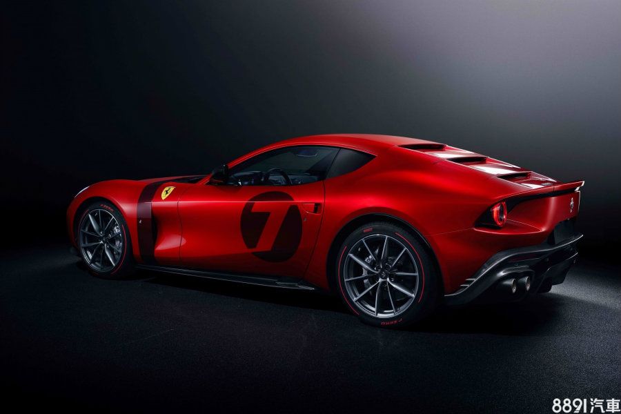 在車門上可以發現,其肌肉線條恰巧與葉子板的3/4處巧妙連成一線。同時,Omologata取消了後側三角窗,讓高聳的腰線更加鮮明,車尾如同「梯田」般的三條水平線造型,使得尾部更加沉降,充分凸顯斜背跑車設計,尾燈雖從「四環」改成「雙圓」,但多少還是能看出源自812 Superfast的血脈。