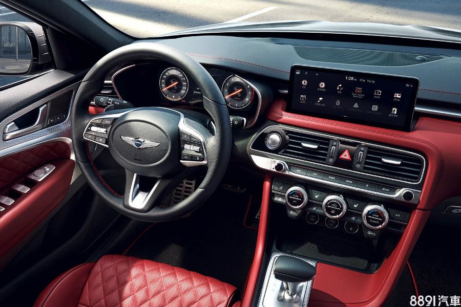 G70 Sport版本可選性能氛圍較顯著的紅色內裝,包含方向盤、排檔座等處則以類碳纖維飾板來點綴。