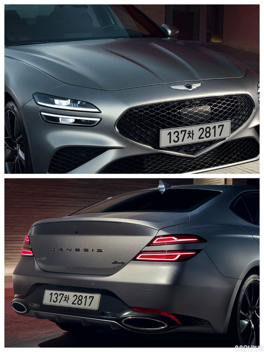 一如先前的定裝照,小改款G70也換上G80、GV80等新一代家族設計,強調其動感與優雅。車頭可以說是大變臉,水箱罩從原本的倒梯形,改換成類似心型,下氣壩及左右進氣口則以更多弧形修飾,並一併換上招牌的Quad Lamp雙條式LED頭燈,整體造型較舊款協調許多。