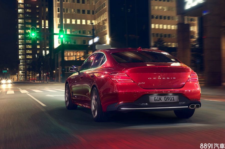 車尾部分變動也不小,因為換上與車頭相呼應的分離式雙條尾燈,使得車門面積變得更加寬廣,上頭結合一體成形的擾流尾翼,廠徽也由「Genesis」字標取代,後保桿造型也略有修改,並搭上右邊雙出排氣尾管。