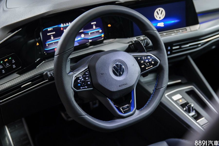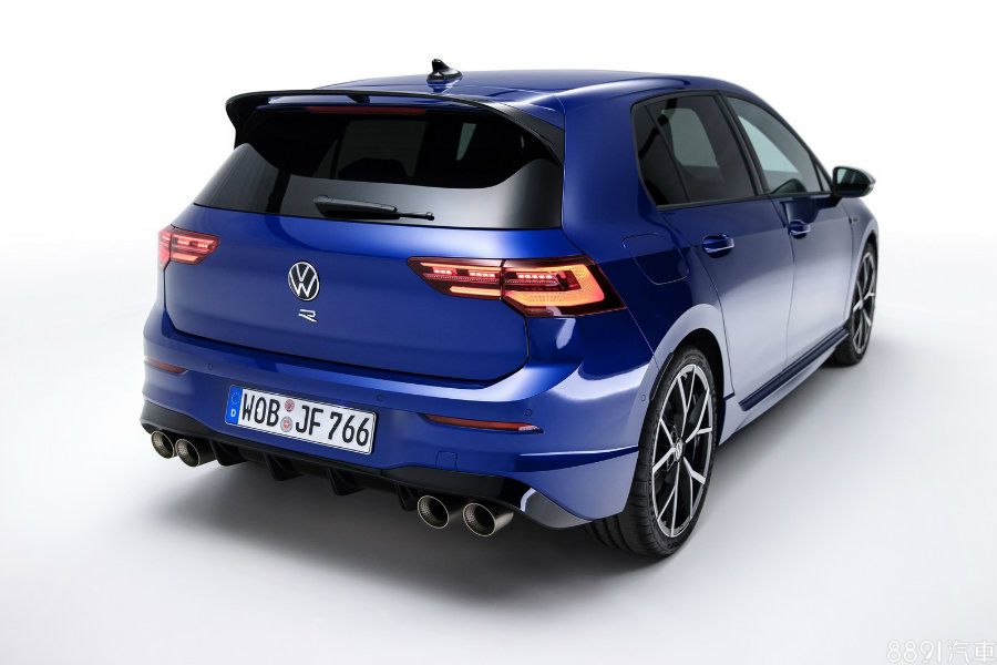 外觀上的變動也是Golf R的重點,更運動化的保桿設計搭配上獨特的前下氣壩不容錯認,施以亮黑色的烤漆彰顯低調性能氛圍,同時在發動後也可以看到引擎蓋前緣有一道特殊的藍色燈條,與藍色車身顏色相當協調,後方也使用了亮黑色的下擴散器,搭配左右四出的排氣尾管,彰顯運動色彩。