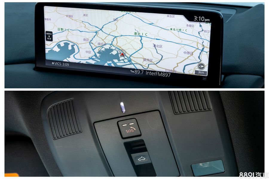 日規CX-5及CX-8另針對原本配置的8吋多媒體觸控螢幕,依車型升等為尺寸更大的8.8吋或10.25吋,同時在車頂閱讀燈位置增加了SOS的緊急呼叫功能。