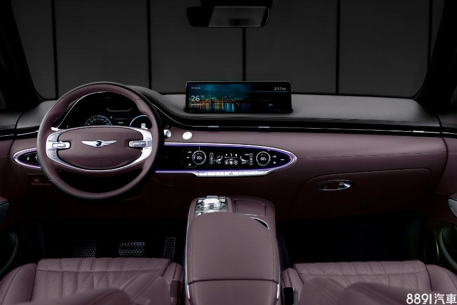 GV70內裝以韓國建築為靈感,中控台上方的橢圓形面板設計則取自飛機機翼,並藉由大量減少實體按鍵、隱藏式空調出風口、旋鈕式線傳排檔座等設計,讓車內看來相當簡約時尚。