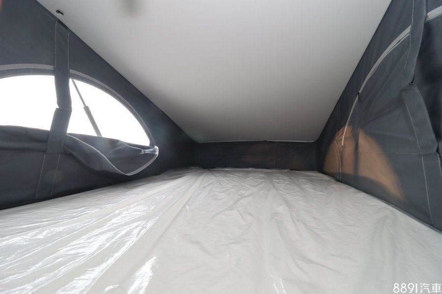 將液壓車頂上掀後,可再提供雙人睡躺空間,兩側並設計有半圓形小窗。