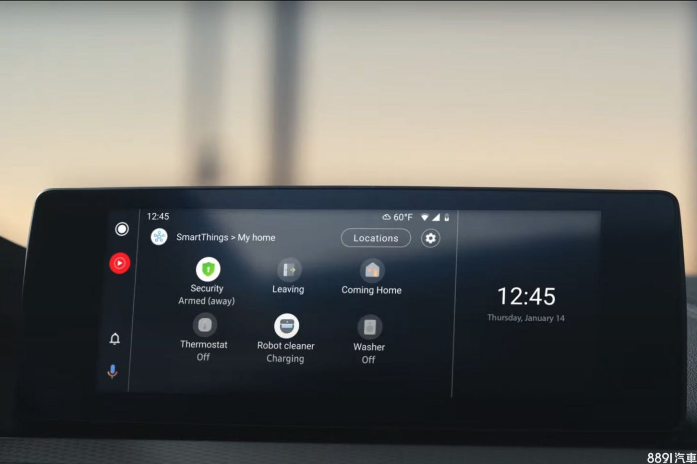 此外,配合SmartThings應用服務的拓展,Samsung指出在支援的車款上,車主將可透過手機遠端啟動引擎或熄火,亦可設定車內空調。同時,透過與Google的合作,Samsung也展示了新版的Android Auto介面,如結合SmartThings服務,車內乘客也可藉由車載系統控制家中智慧電器。