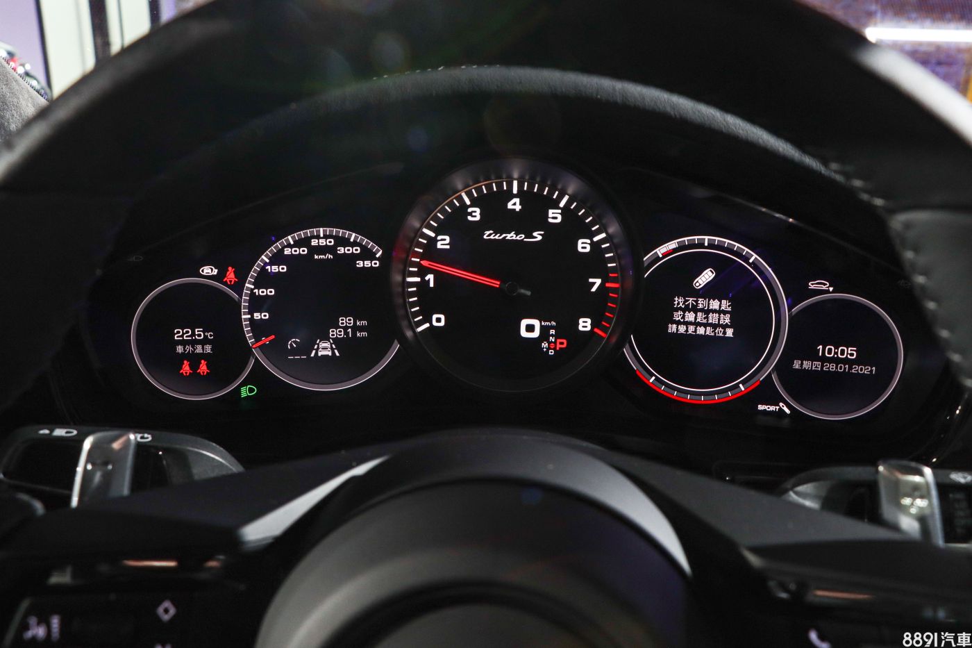 Panamera Turbo S儀錶採用專屬黑底轉速錶設計,上方並有Turbo S字樣,顯其身分。