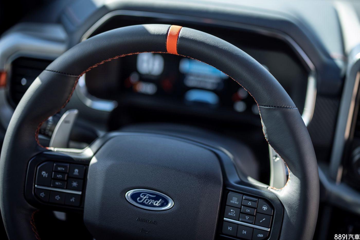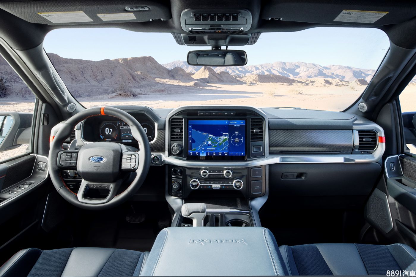 內裝方面,新一代F-150 Raptor標配12吋數位儀錶,並搭配SYNC 4多媒體系統的12吋觸控螢幕,可支援OTA線上更新、Apple CarPlay、Android Auto等連接功能,搭配18具揚聲器的B&O環艙音響組。