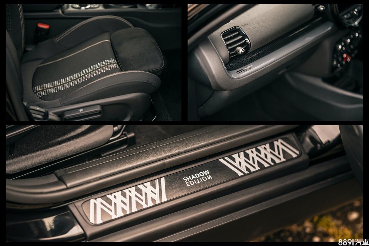內裝部分,Shadow Edition延續外在的元素,在車室內大量採用黑色皮革、鋼琴黑烤漆飾板妝點,並分別在中控台與車門踏板等處標上「Shadow Edition」的專屬彩繪與銘板,另外座椅也植入John Cooper Works專屬運動化座椅,增添賣點。