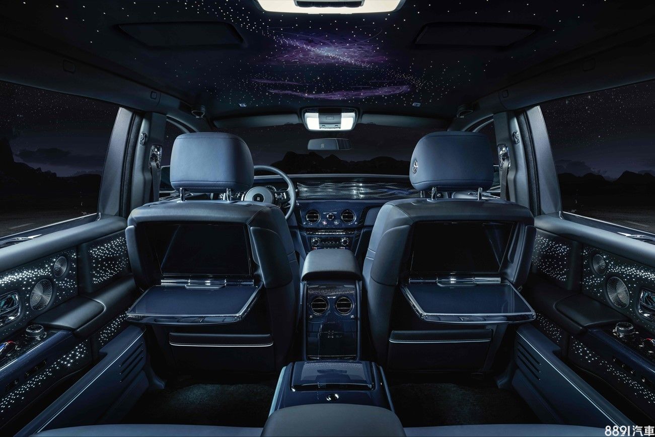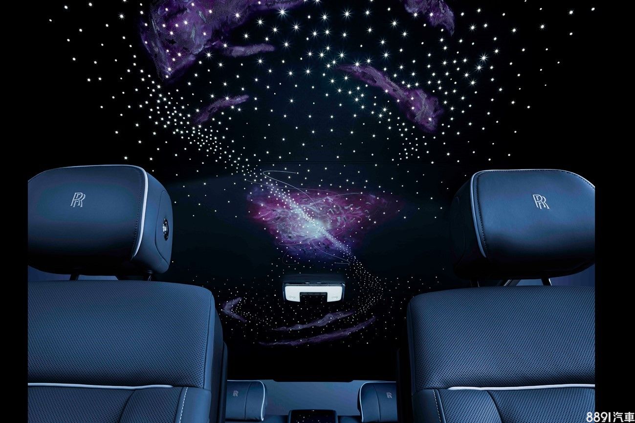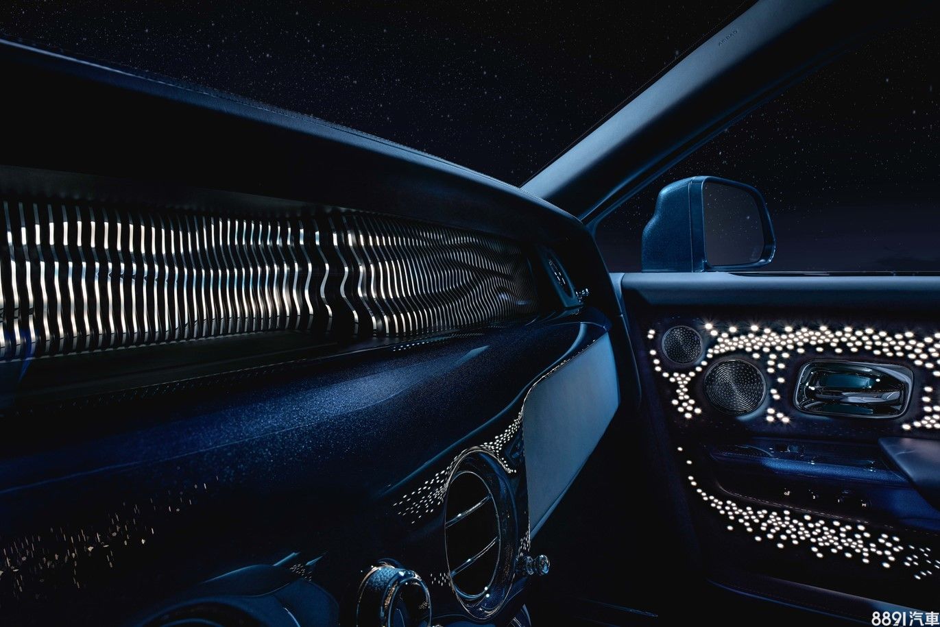 另外於車門內側通過皮革中數百個透光孔洞,猶如閃耀旋轉的群星,原廠聲稱即使在未被點亮時,也能呈現浩瀚宇宙的氣勢。車內選配的香檳酒櫃,表面也設計有手繪脈衝星圖案,內在功能一應具全,包括可冰鎮香檳和魚子醬的保溫壺、四支手工水晶香檳杯,甚至還配備有享用魚子醬的珍珠母小匙。