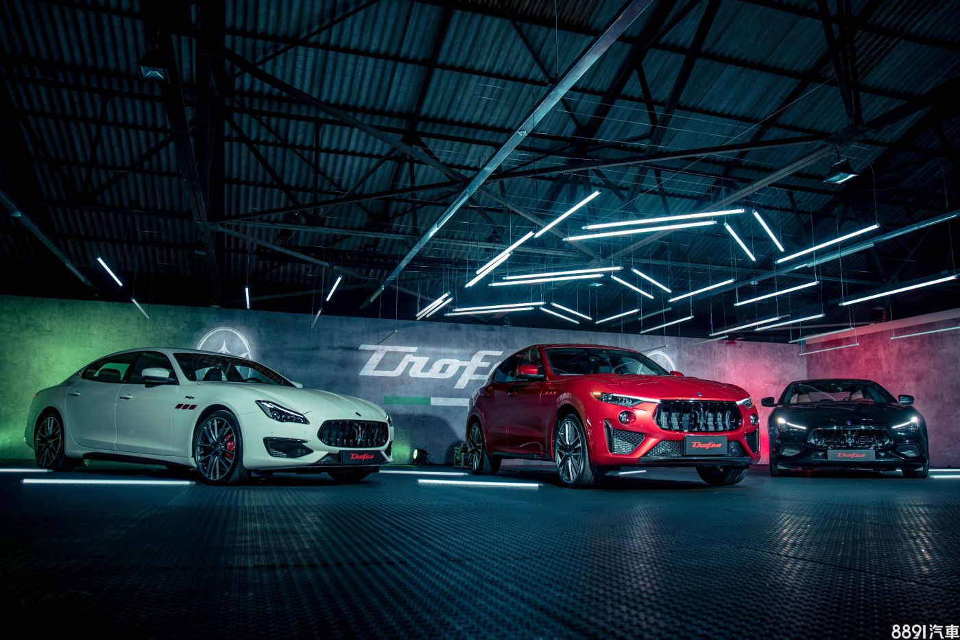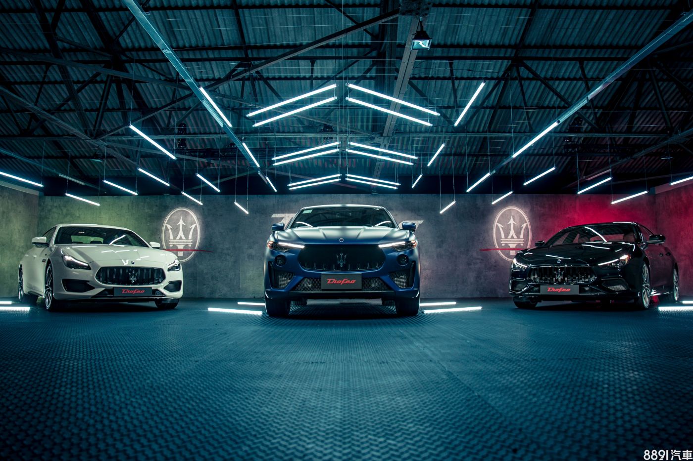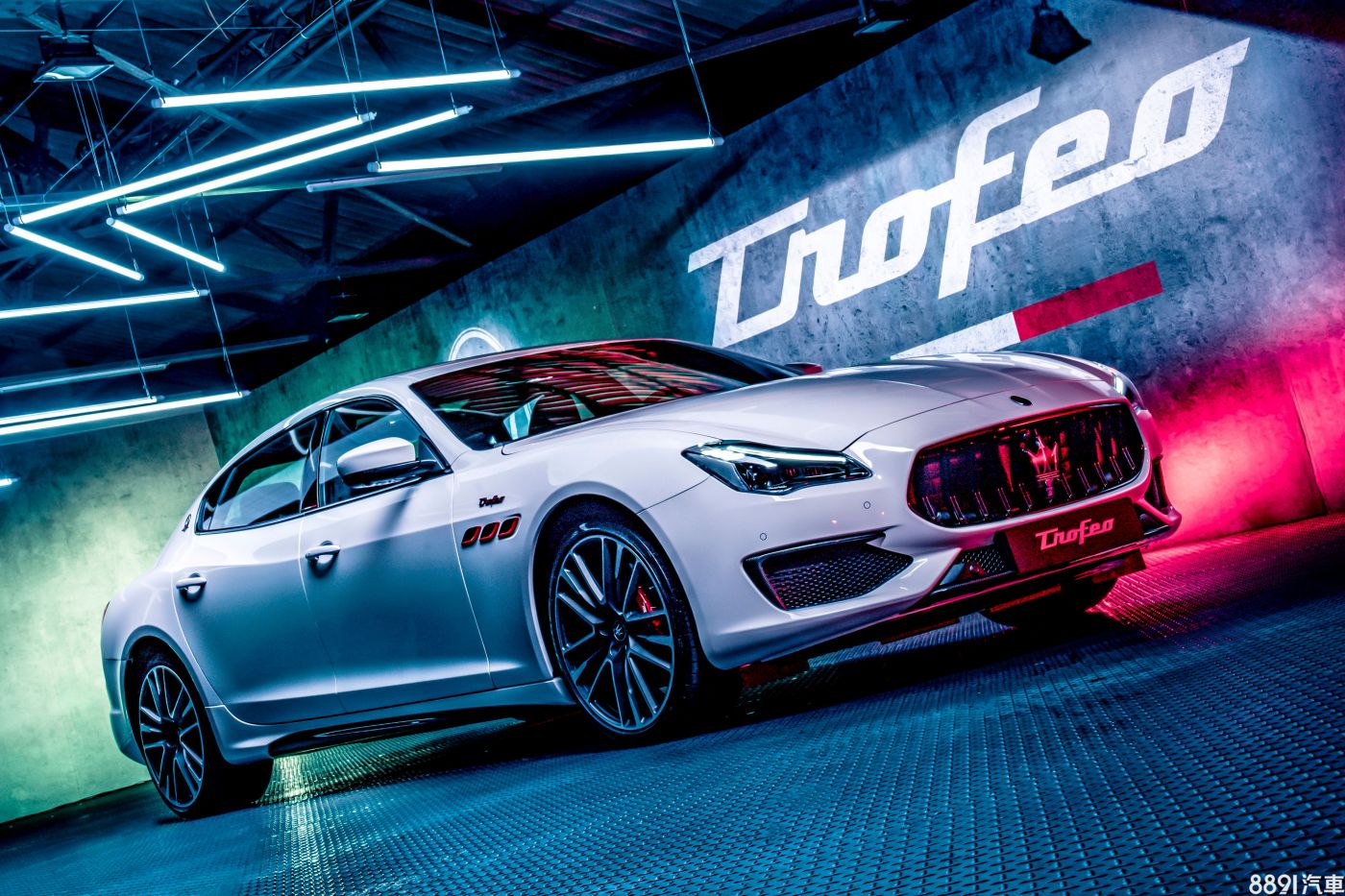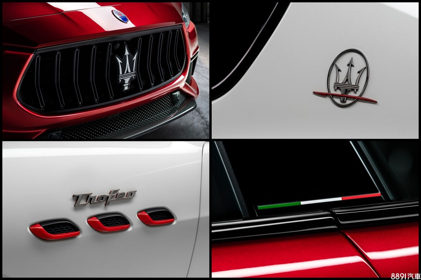 所有Trofeo車型外型均標配21吋鋁圈、碳纖維空力套件及湛黑外觀套件,後者為水箱柵、窗框採亮黑處理,並搭配燻黑燈組。此外,另有葉子板「Trofeo」徽飾、紅色葉子板散熱孔飾框、B柱義大利國旗裝飾及紅箭C柱廠徽等可供車型識別。