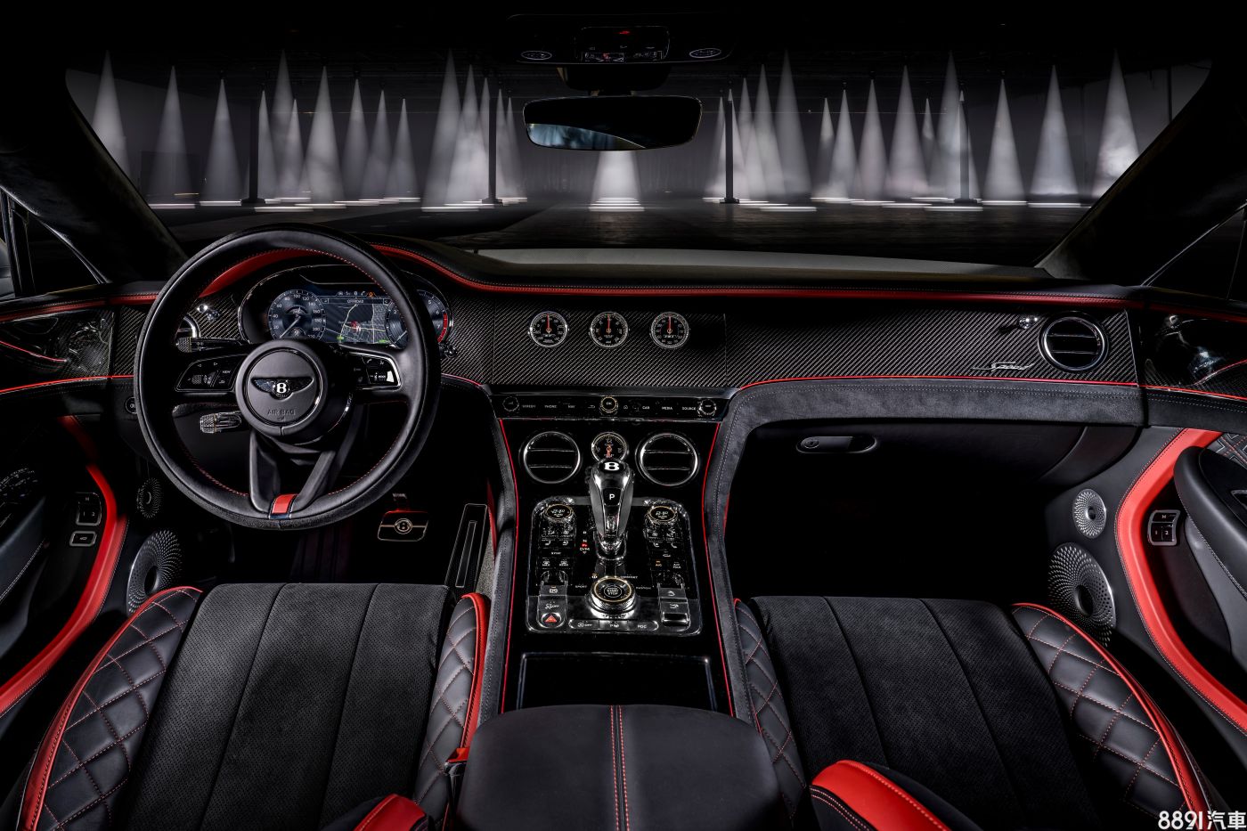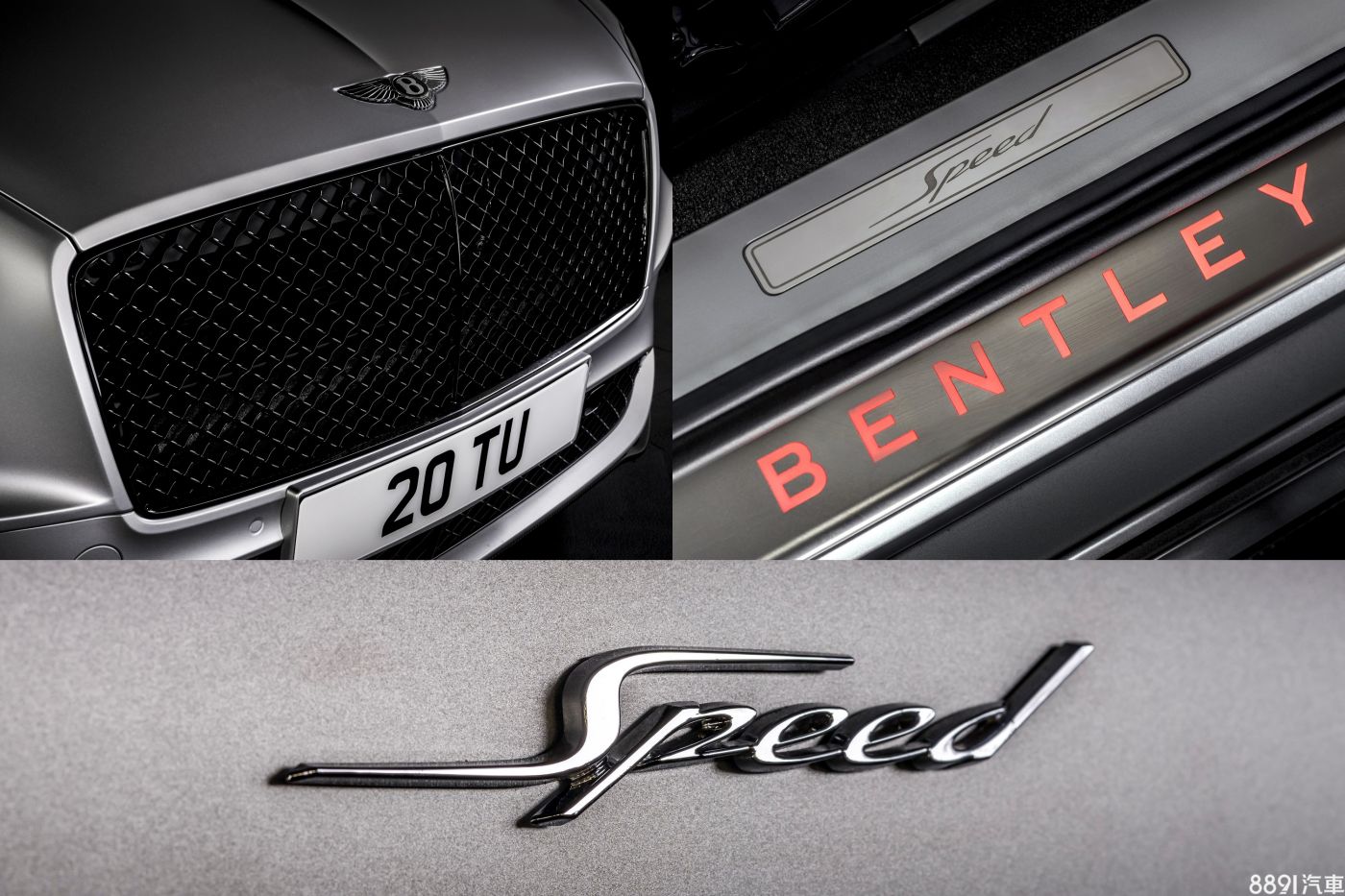外觀方面,Continental GT Speed水箱罩及下氣壩均改搭深色網格,並在前葉子板貼上「Speed」鍍鉻徽飾以及專屬迎賓踏板。