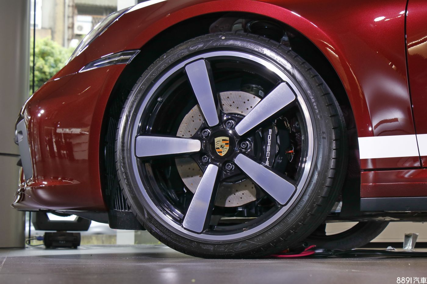 展示車搭載前20、後21吋的Carrera Exclusive Design鋁圈,中央亦有專屬盾型徽飾,並配置「經典款」黑色前六活塞煞車卡鉗(一般版為前20、後21吋的Carrera S鋁圈+紅色卡鉗)。