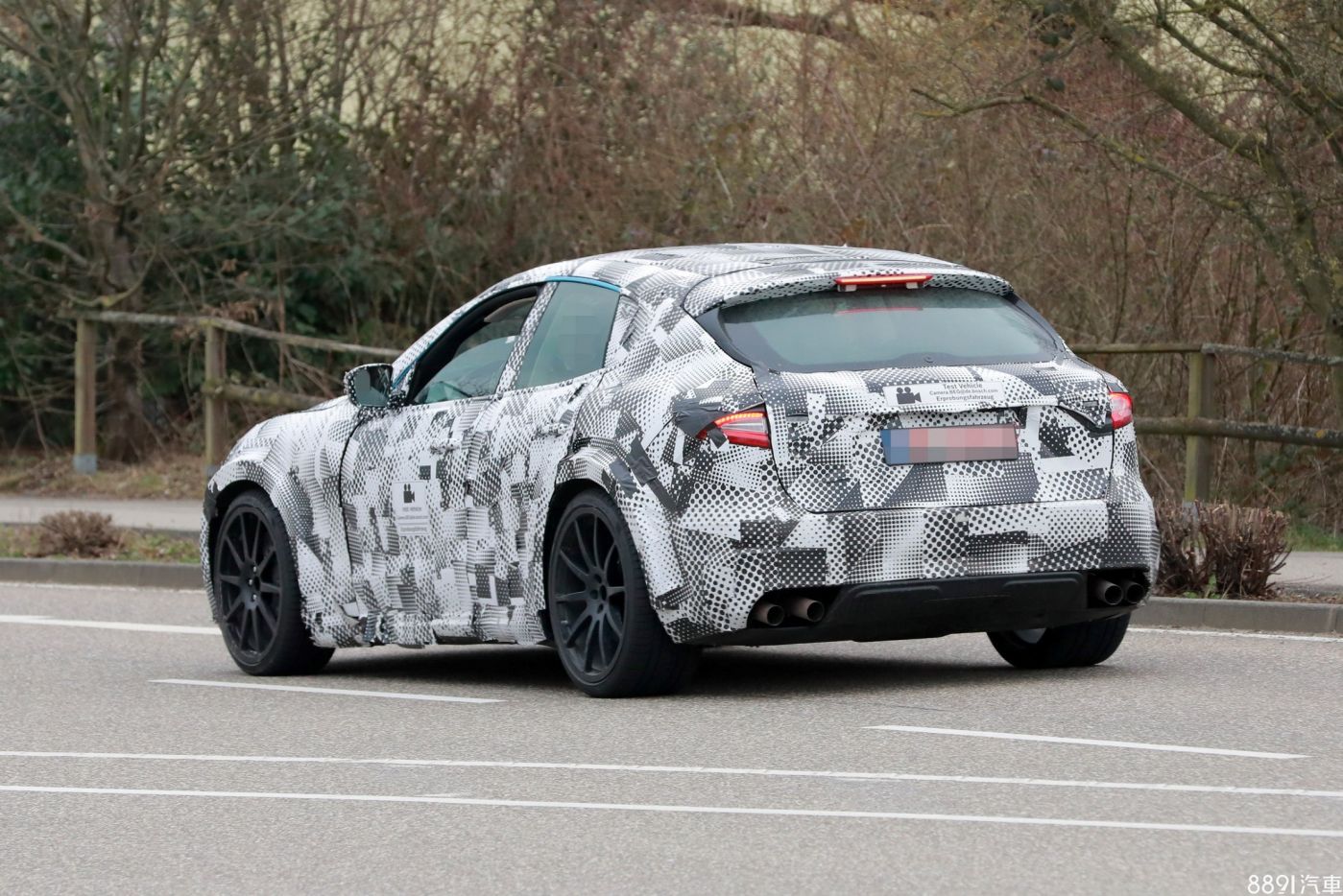 車身輪廓及低矮身形倒是沒有太多變化,但從窗框處露出的螢光藍來看,未來Purosangue將會有不同於當今Ferrari跑車的鮮豔車色可選擇。至於車尾仍有滿滿的貼紙覆蓋著,且從輪廓看來仍舊只是暫用Levante的車殼作為偽裝,因此參考價值不大。不過可以確定的是,四出排氣尾管絕對不會缺席。