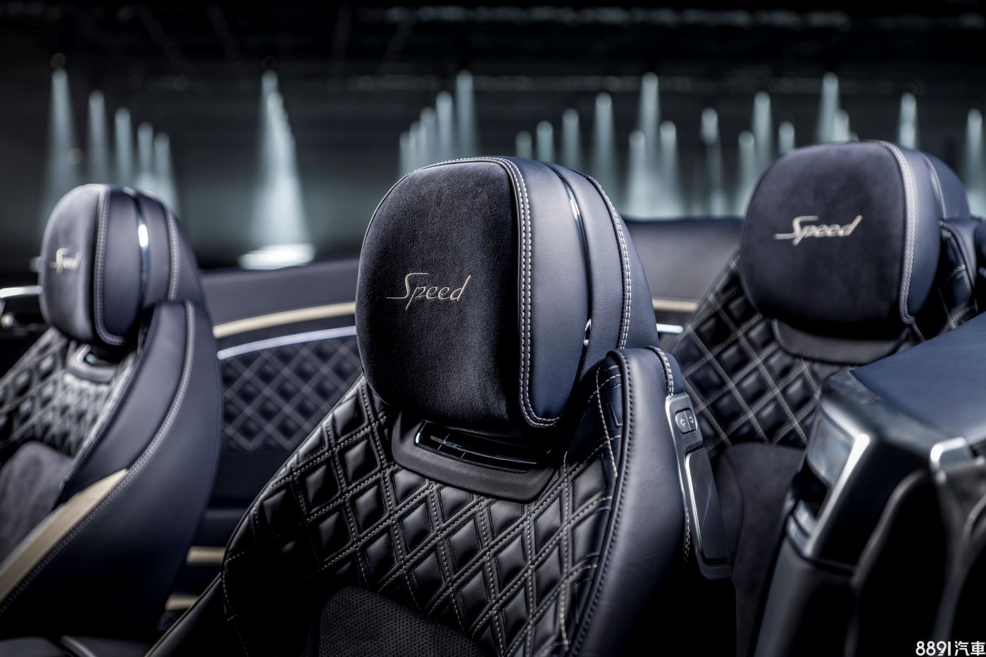 座椅採「雙鑽石」車縫刺繡,頭枕處同樣可見到Speed字樣。雙前座另配備頸部暖氣系統,原廠指出該系統不僅較舊款安靜,也更加溫暖,還可搭配加熱座椅、方向盤及中央扶手一同使用,冬季開篷也不必忍受寒風吹送。