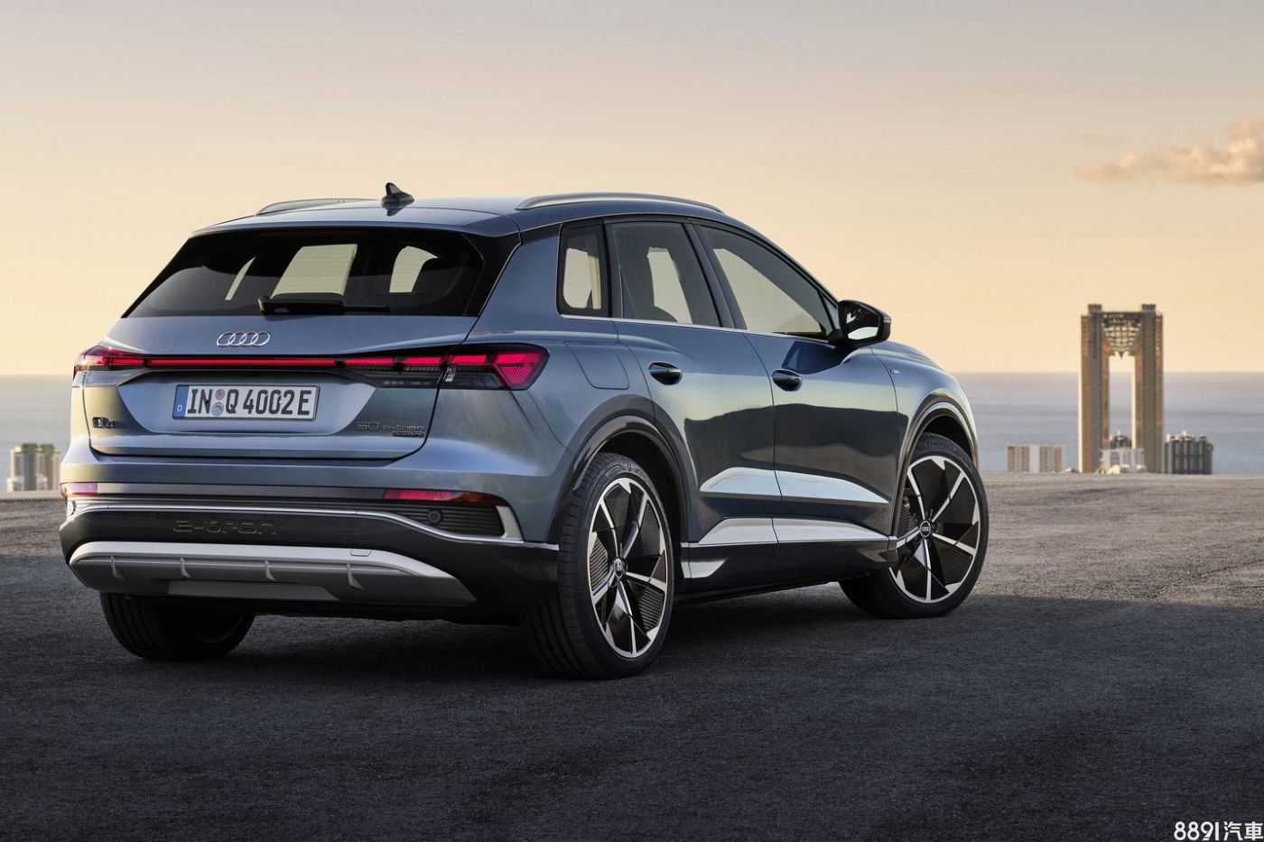 跟著高聳腰線作延伸,Q4車尾有著多層次且具肌肉感的造型,並同樣與e-tron採橫貫式尾燈。車尾上半部則是Q4與Q4 Sportback最大的不同,後者由於更流線的造型降低了風阻,也增進了續航表現。