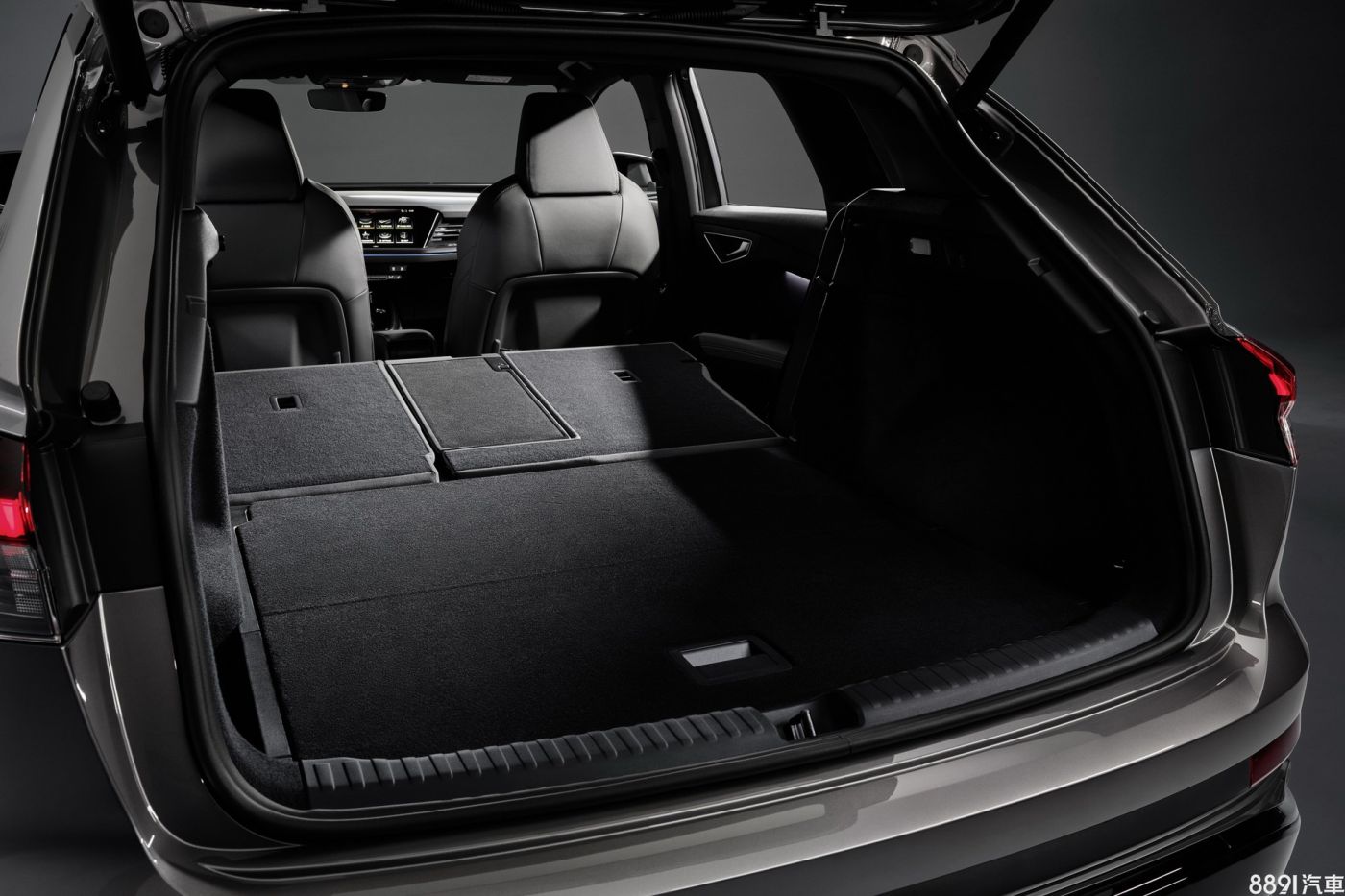 在標準五座配置下,Q4具備520L行李廂空間,Q4 Sportback反而略增至535L,若將4/2/4分離的後排椅背完全傾倒,Q4可擴增至1490L水準,而斜背版本則有著1460L的表現。