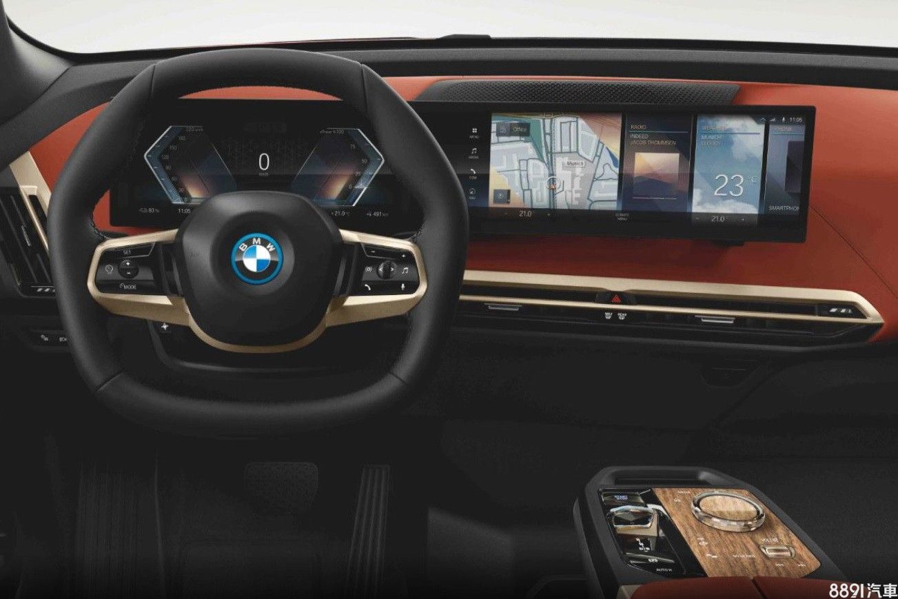 車室極簡化,原廠表是內裝材質使用了環保用料,搭載BMW Operating System 8,採用相連式曲面設計的2具寬幅螢幕,由12.3吋數位儀錶、14.9吋中控螢幕架構而成,科技感濃郁之餘,車載系統也更智慧更具「互動性」。