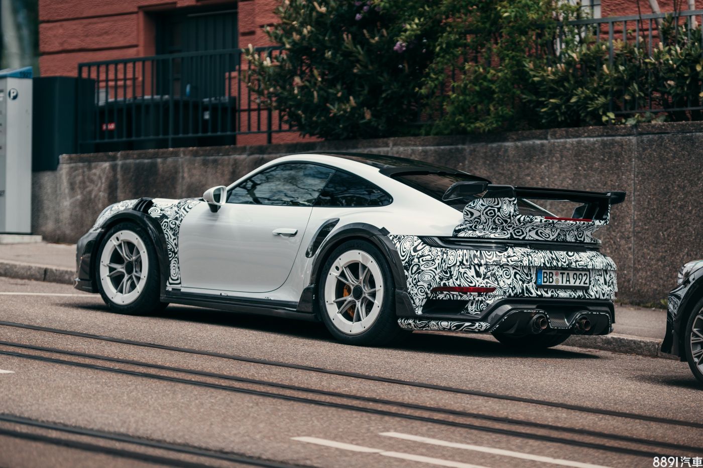 輪框具備降低風阻的可拆式蓋板,並換裝專屬的排氣系統,而最顯眼的部分莫過於固定式大型尾翼,採用碳纖維材質,兩側支架更融入進氣口設計,這部分致敬了993 Carrera RS的特色。