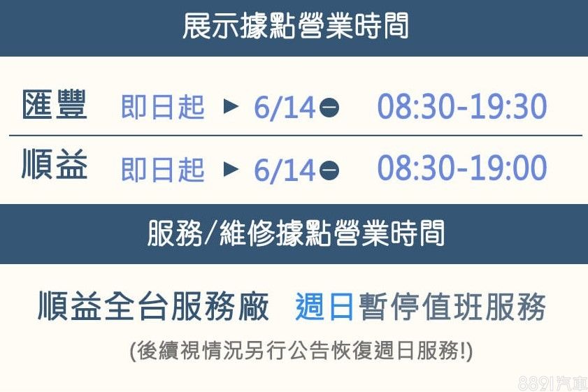 配合防疫管控,中華三菱調整展間營業時間,並暫停順益全台服務廠週日值班,而原先施行的到府試乘服務也隨著三級警戒而取消。
