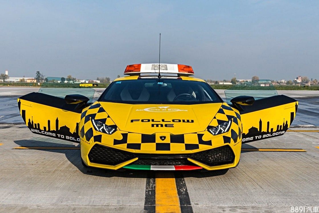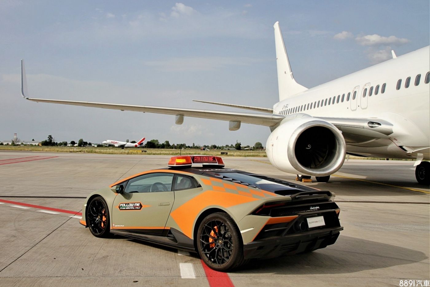 波隆那是藍寶堅尼的誕生地,也是現在品牌總部所在地,雙方自然有深厚情感,這次以最新的Huracan EVO Coupe為基礎,在Centro Stile設計部門巧手改造後,加上無線電系統、車頂警示燈以及特殊Verde Turbine Matt消光綠、Arancione Matt橘色圖形的特殊彩繪車身,向機場航廈、其餘地勤車輛的配色相呼應。