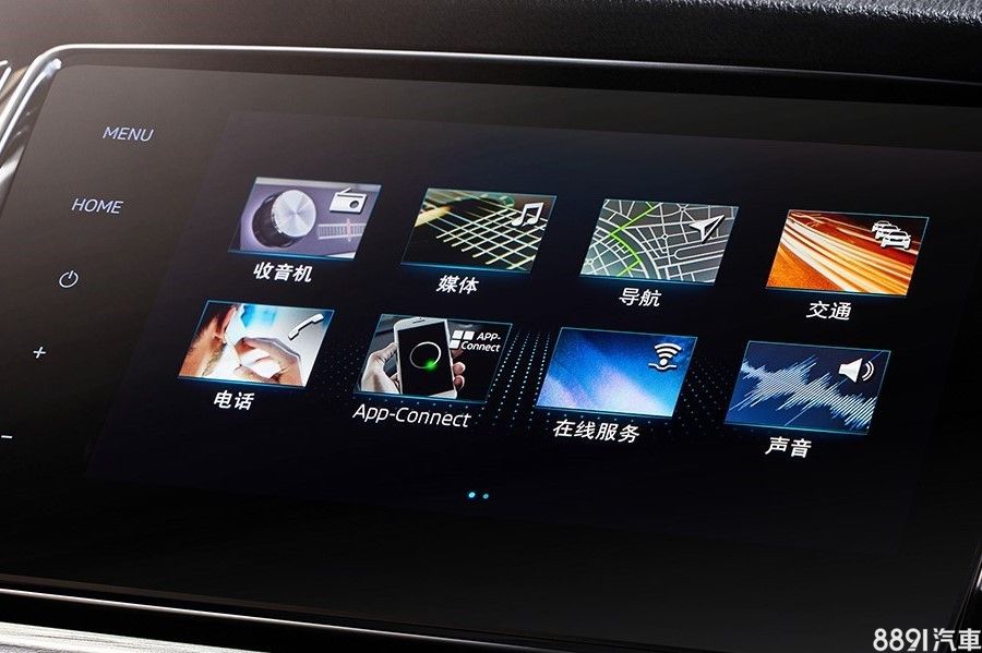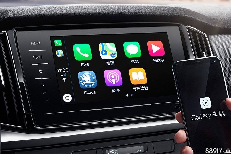 8吋觸控螢幕也可透過USB,連接Apple CarPlay、百度CarLife、Mirrorlink等系統,除了可通過觸控螢幕操作外,亦支援語音辨識功能。