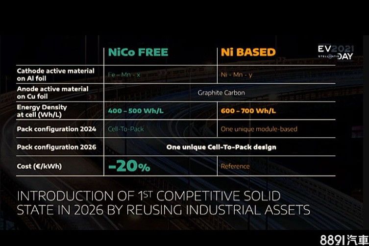 原廠也積極研發不含鎳和鈷元素的電池、高能量密度電池,以及固態電池,前兩者計劃在2024年推出,不含鎳和鈷元素的鋰電池組,集團公布能量密度為400~500Wh/L,預計每度電成本可降低20%;高能量密度電池組,能量密度則達600~700Wh/L,在這兩款電池組推出後,Stellantis預期可減少電池模組的成本達40%、而電池效率提升4%;至於能量密度更高、更耐用也更安全的固態電池,則需等至2026年。