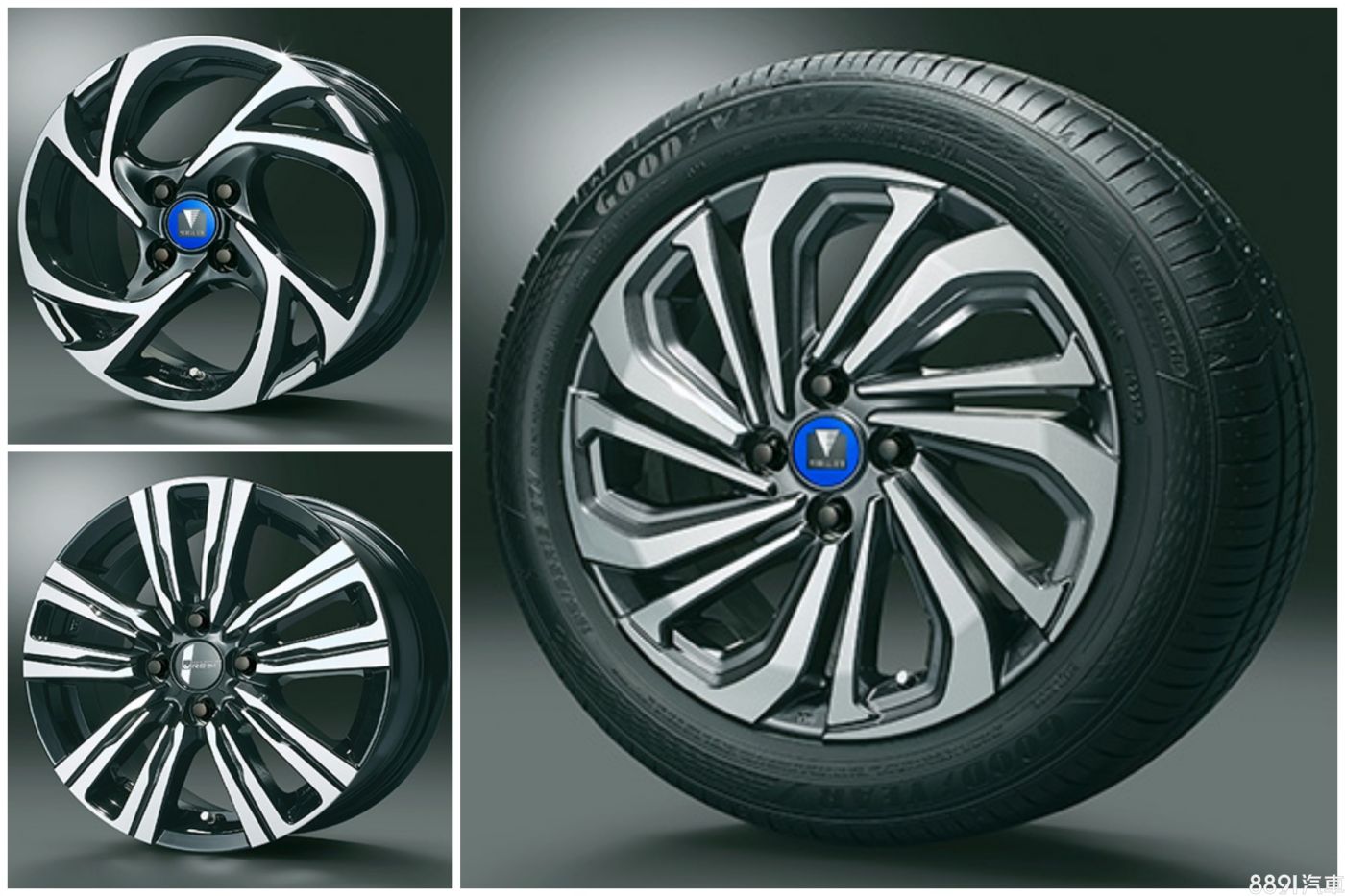 Modellista為Prius C提供三款鋁圈可搭配,皆採雙色調設計,包含15吋Y肋四輻旋風款、15吋雙肋十輻款,以及16吋雙肋偏心造型。其中,16吋鋁圈更指定搭配195/55R16固特異EfficientGrip Eco EG02販售,是固特異針對日本市場推出的節能胎款。