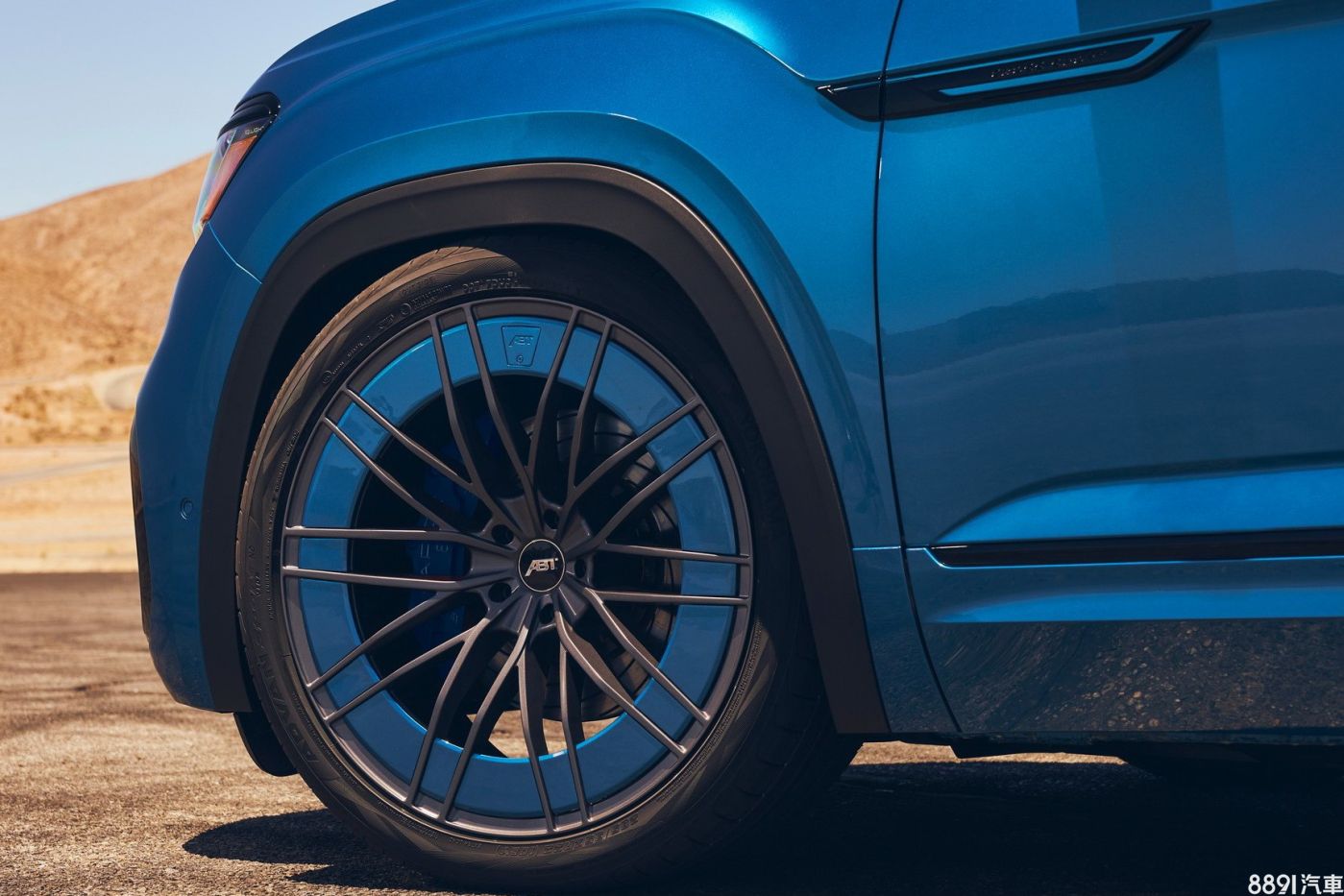 除了張力十足的22吋ABT的Sport HR AERO WHEEL鋁圈,以及尺碼為285/35R22的Yokohama Advan Sport V105性能化跑胎,原廠還為概念車搭載具回彈阻尼16段可調功能的ST Suspension XTA Plus 3避震、前八活塞Tarox煞車卡鉗。