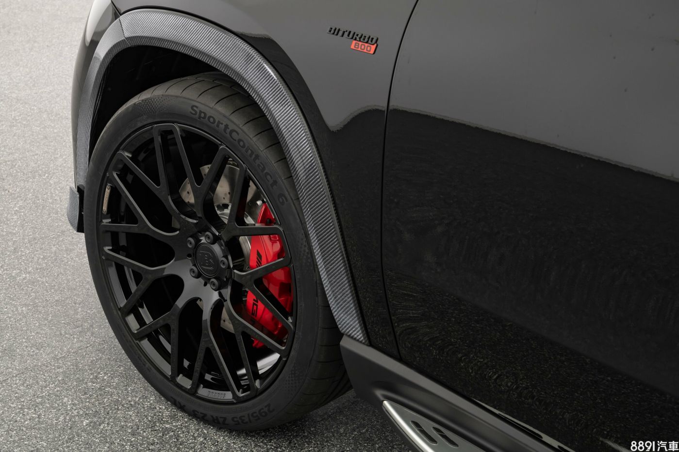 Brabus 800足下搭載23吋鍛造鋁圈,採用鍛面黑、Y字多幅造型,與壯碩的身形十分搭配,氣壓懸吊也套用改裝程式模組,相較原廠GLE 63 S車高降低25mm,換取更敏捷的操控能力。