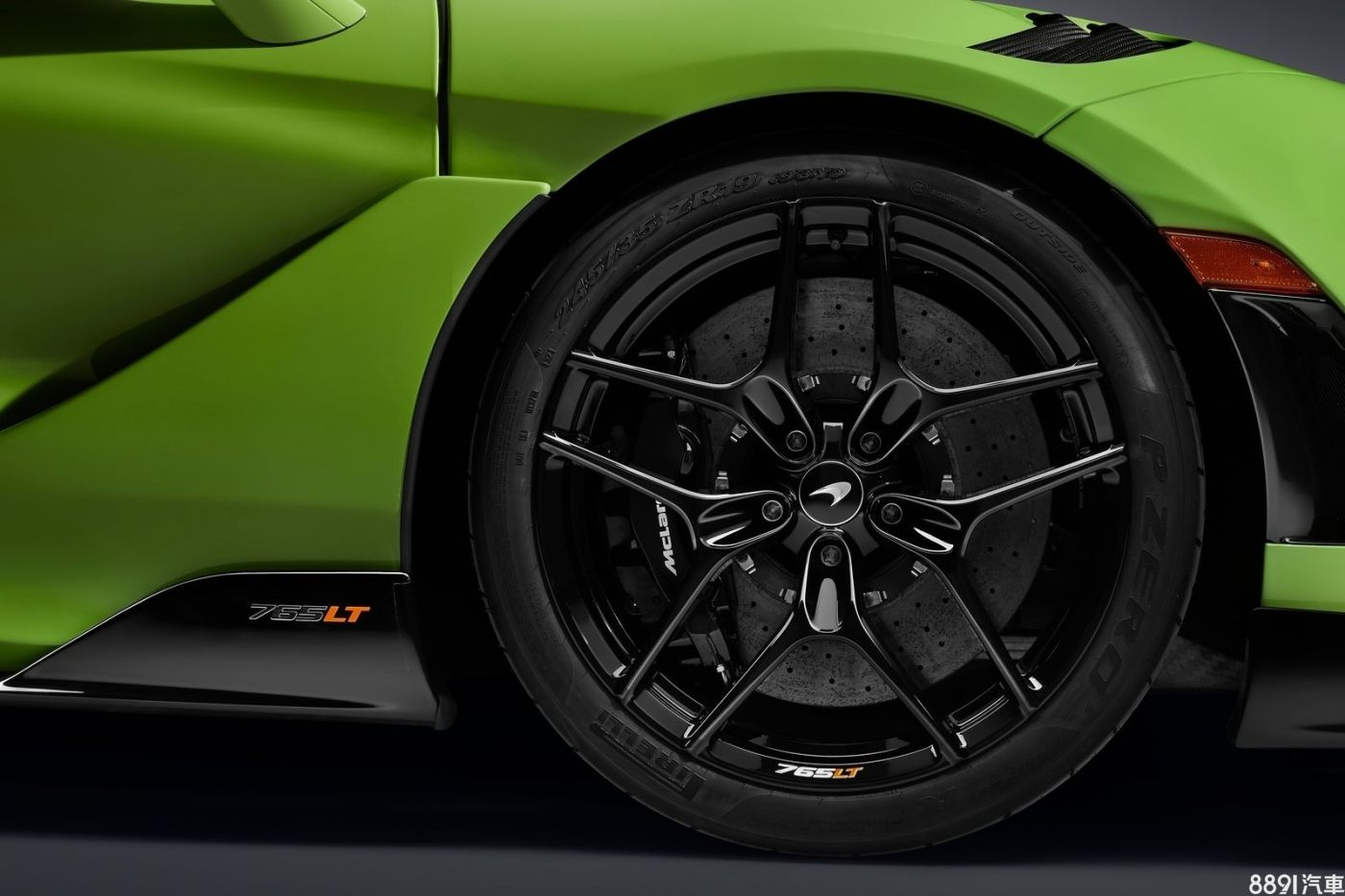 足下搭載單顆重量較720S Spider輕了2.2kg的鍛造鋁圈,連固定螺栓也是鈦合金製,輪胎則採用前245/35R19、後305/30R20的倍耐力P Zero Trofeo R性能胎。