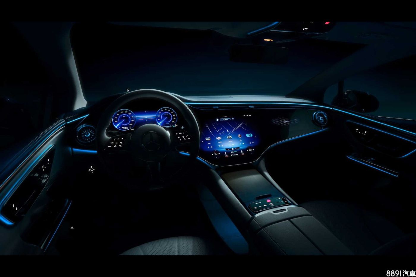 座艙格局流露出更強烈的EQS既視感,尤其EQE預覽車款配備了三螢幕的MBUX Hyperscreen數位儀錶台,嵌有12.3吋數位儀錶、17.7吋中央觸控螢幕及12.3吋副駕駛座觸控螢幕等,但推測應與EQS同樣採加價選配提供。