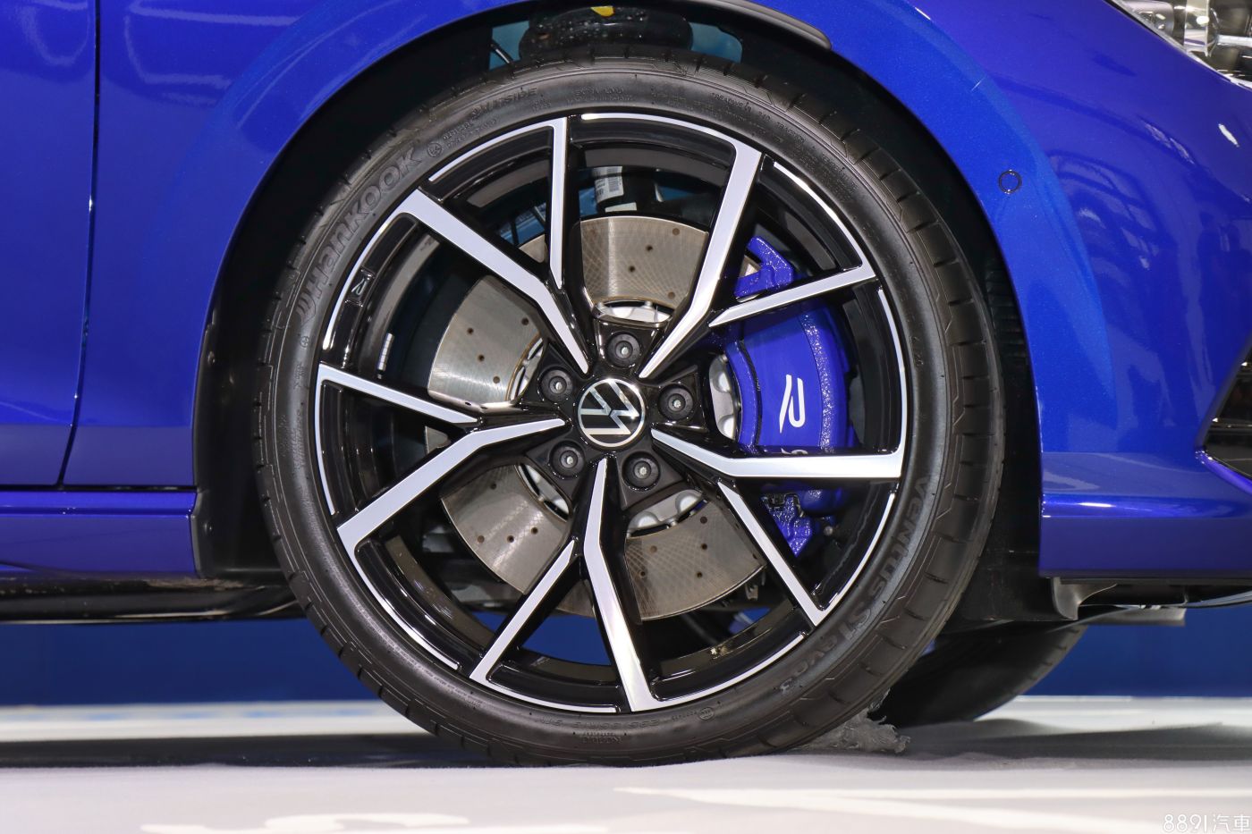 均標配19吋鋁圈,以及帶有R字樣的藍色煞車卡鉗,前碟盤也予以打孔設計,強化散熱,搭配的是235/35R19的Hankook Ventus S1 evo3跑胎。