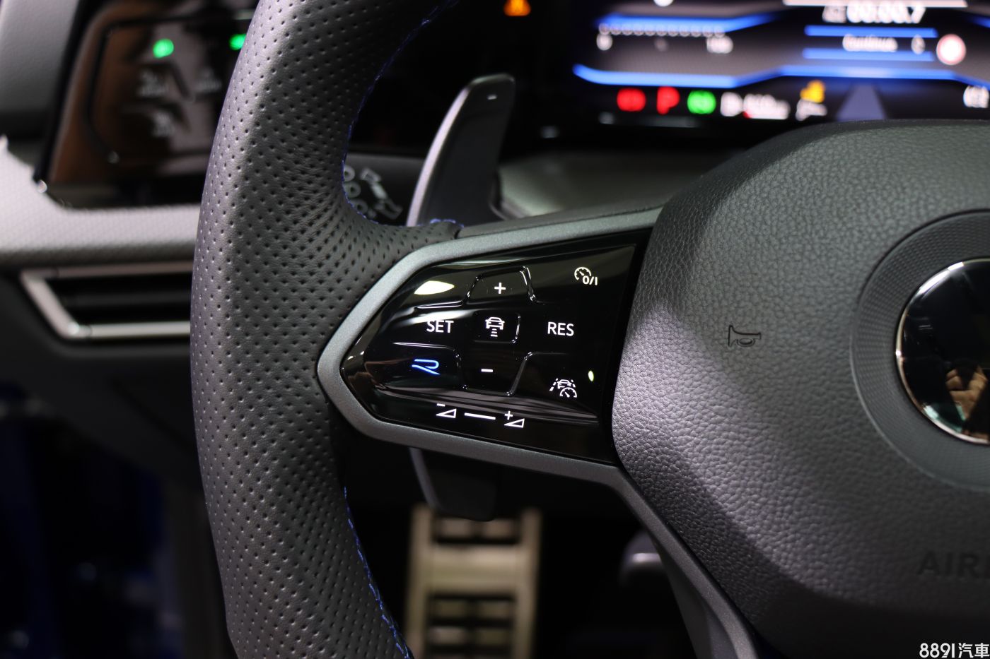 不同於其他版本,車室搭載有著專屬「R」鍵、可快速開啟Race模式的平底方向盤、金屬踏板,以及設計較一般版更大的換檔撥片等。其他標配項目包含有電動天窗、Keyless、30色分層氛圍燈、三區恆溫空調、10.25吋數位儀錶,以及10吋MIB 3多媒體系統等。