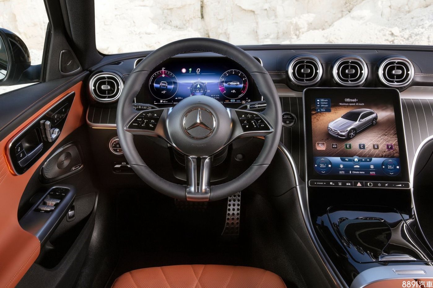 車室自然比照一般版新世代C-Class,加入棕色色調和消光金屬材質,呼應外觀特色,比較特別的地方在於,Dynamic Select選項除了原有的Eco、Comfort、Sport和Imdividual,追加Offroad、Offroad+兩種越野模式,前者適用泥土碎石或沙地,後者專為叫嚴峻或陡峭的地形設計,包含懸吊、方向盤、引擎動力等,都會予以自動調整,確保新車能擁有最佳的地形適應力與行駛狀態。