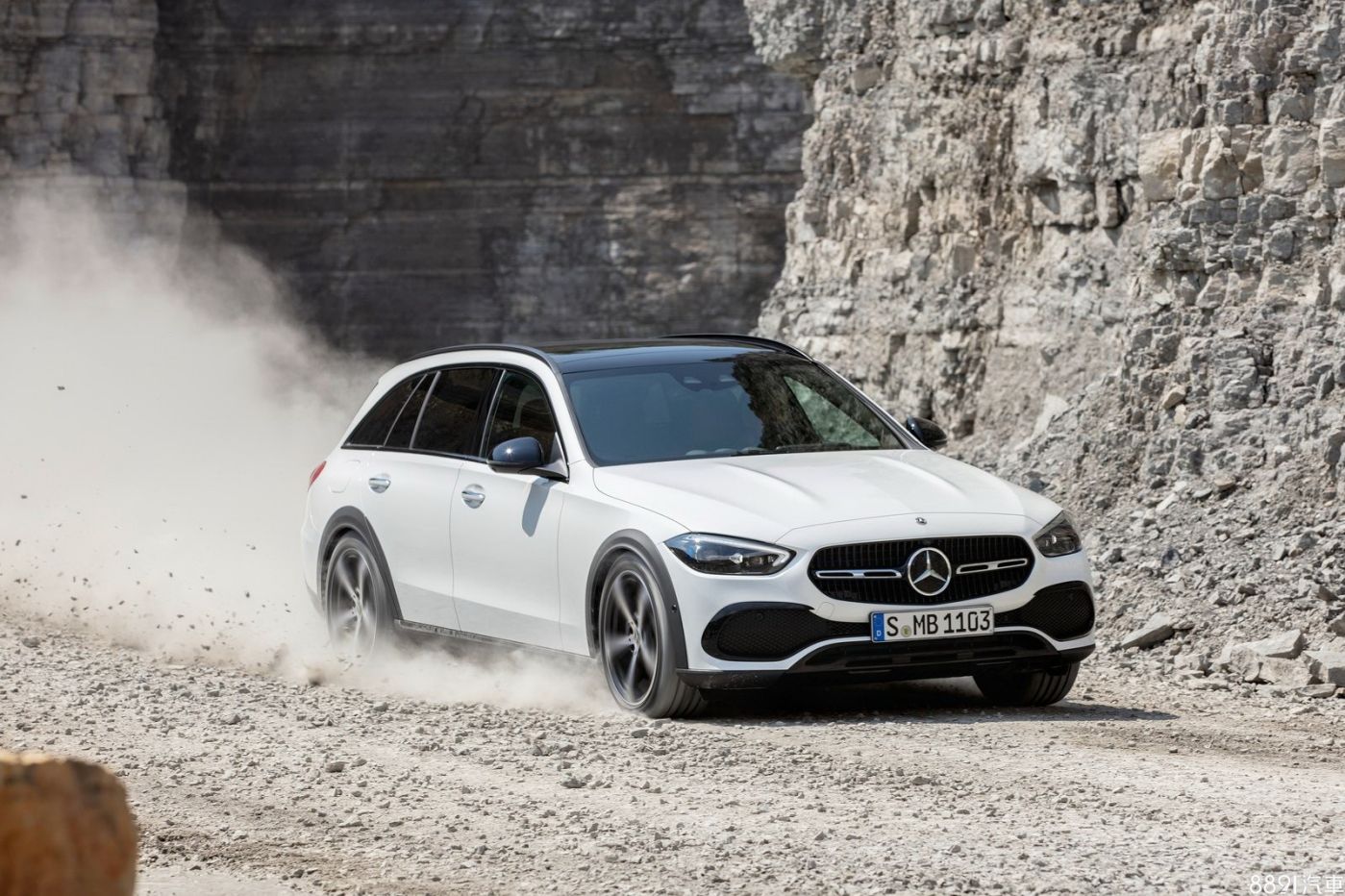 與一般版C-Class Estate相比,C-Class All-Terrain車長、車寬、車高尺碼都略有增加,其中車高的漲幅乃是由於底盤離地高度增加40mm所致,新車藉由以更粗壯的鍍鉻飾條,以及直柵式水箱護罩、下護板打造能讓人一眼辨識的專屬形象。